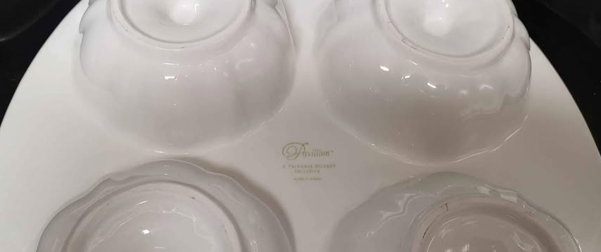 Easily turns out four mini bundt cakes. Durable stoneware from the Pavillion Collection in Natural White. Hand-applied antiqued detailing so no two pieces are alike. Microwave and oven safe to 400 degrees F. Dishwasher safe.