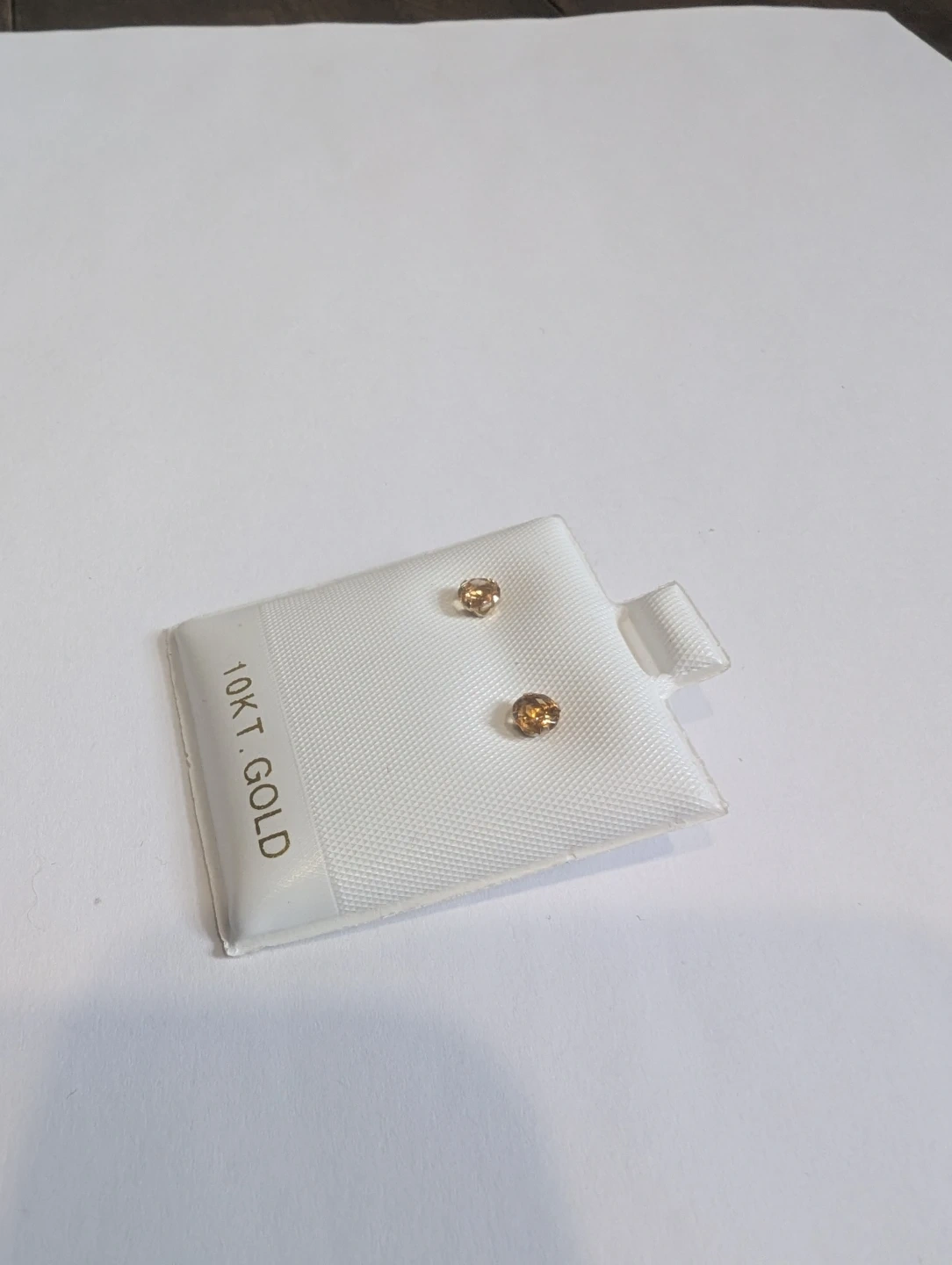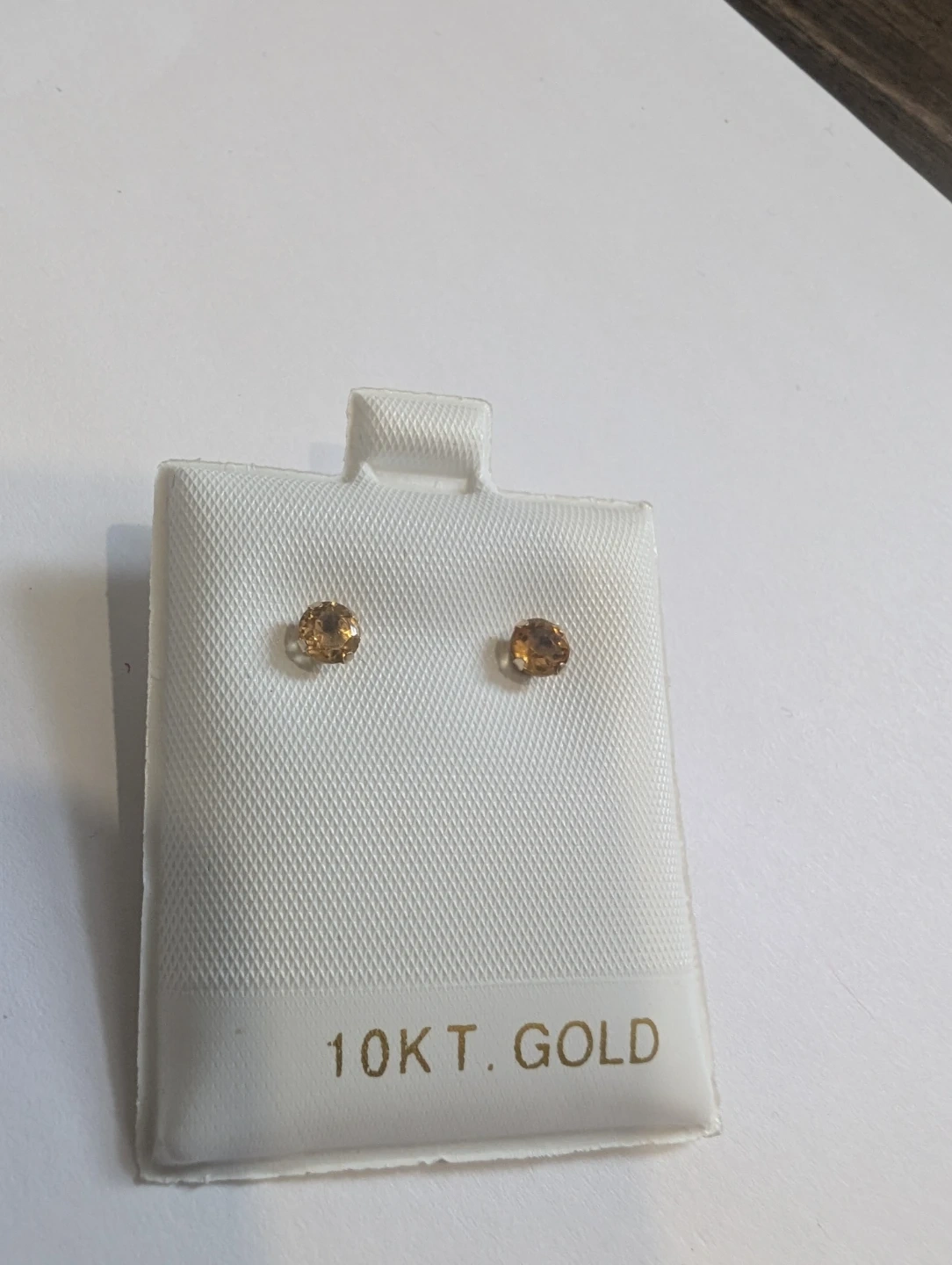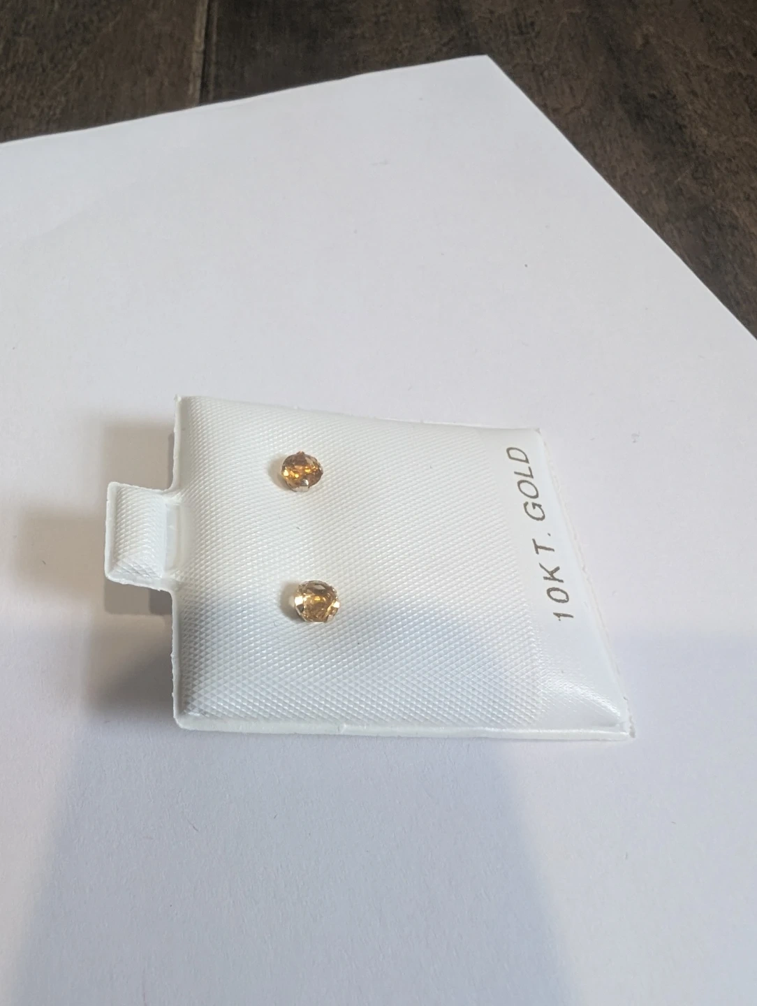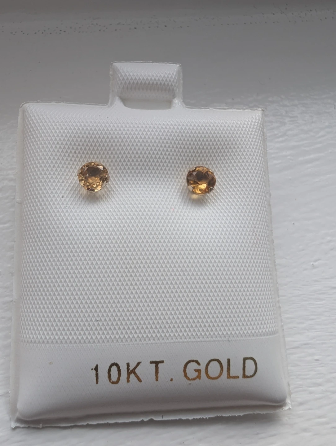 Brand new 10kt yellow gold natural Citrine gemstone earrings for sale. Stud earrings, 0.5ct karat natural citrine gem stone, made in Canada, November birthstone, $75 FIRM.