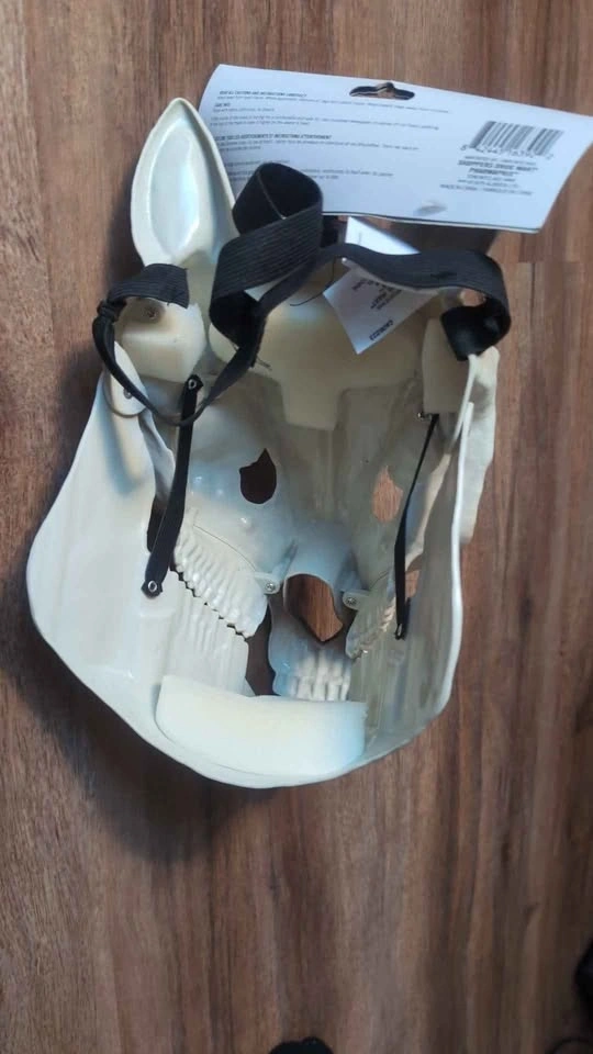 Pickup near Jarvis & Wellesley. Never worn except to take the photo for this ad. Still has tags on it. Elastic jaw so you can still eat with it on I guess?? You can see through the nose holes. Bought it last year but didn't end up using it for my costume.