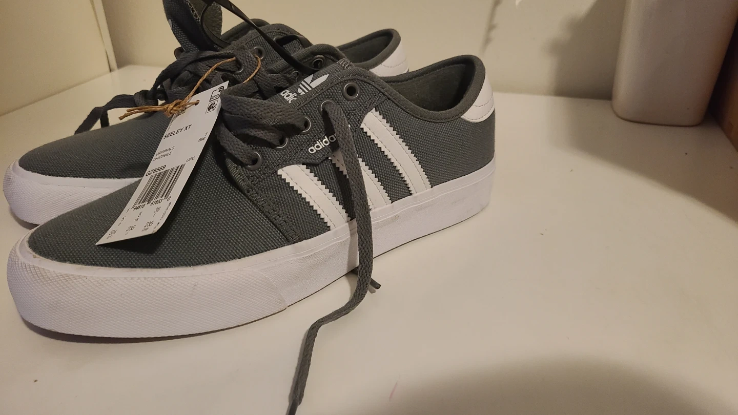 Selling a pair of Adidas Seeley XT shoes in size 5.5. They feature the classic three-stripe design and a durable construction. Great for everyday wear!