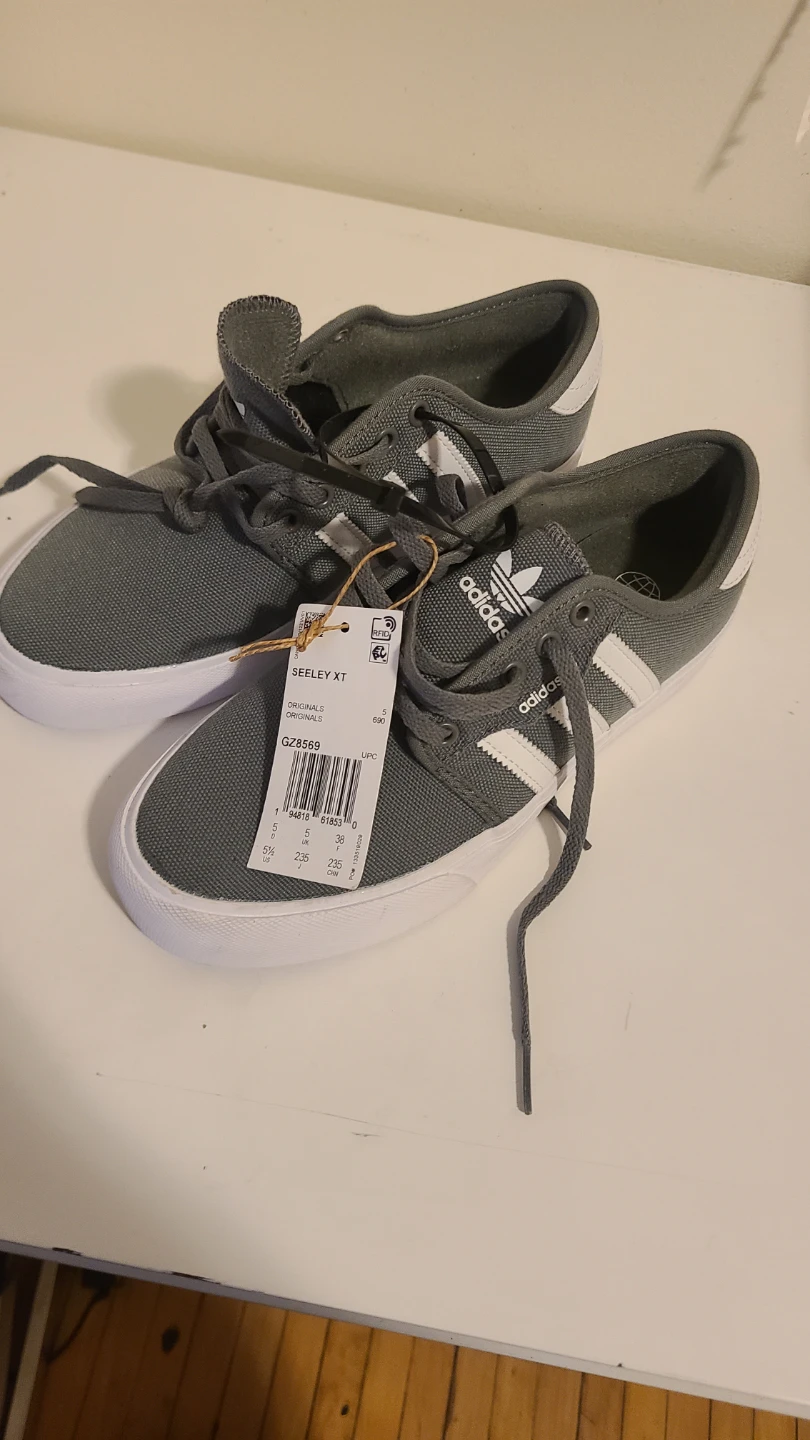 Selling a pair of Adidas Seeley XT shoes in size 5.5. They feature the classic three-stripe design and a durable construction. Great for everyday wear!