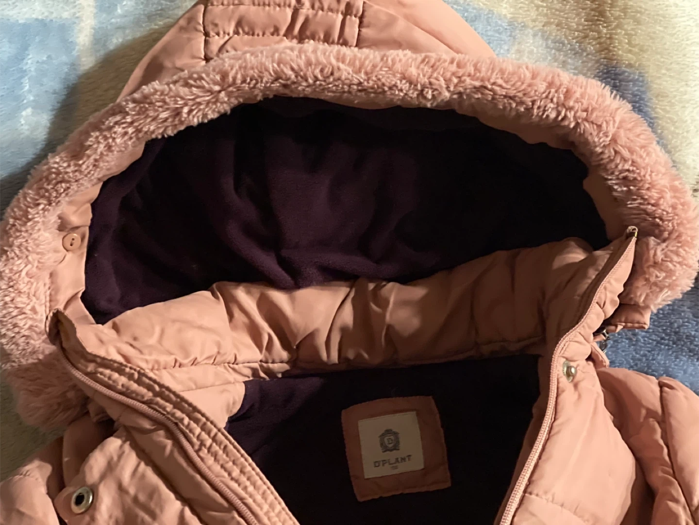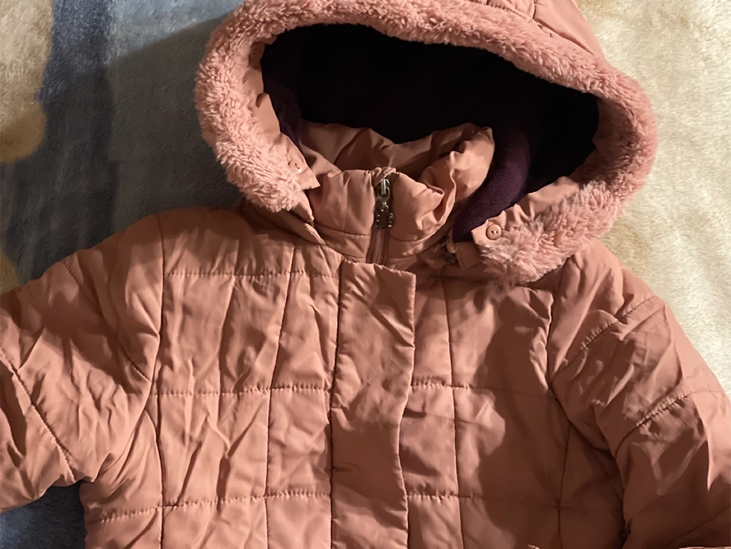 Pink Quilted Winter Coat with Fur-Lined Hood