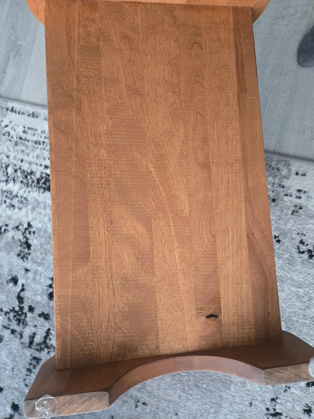 Wooden magazine rack with a carrying handle. It has two open shelves for storage. Great for organizing magazines or books.
