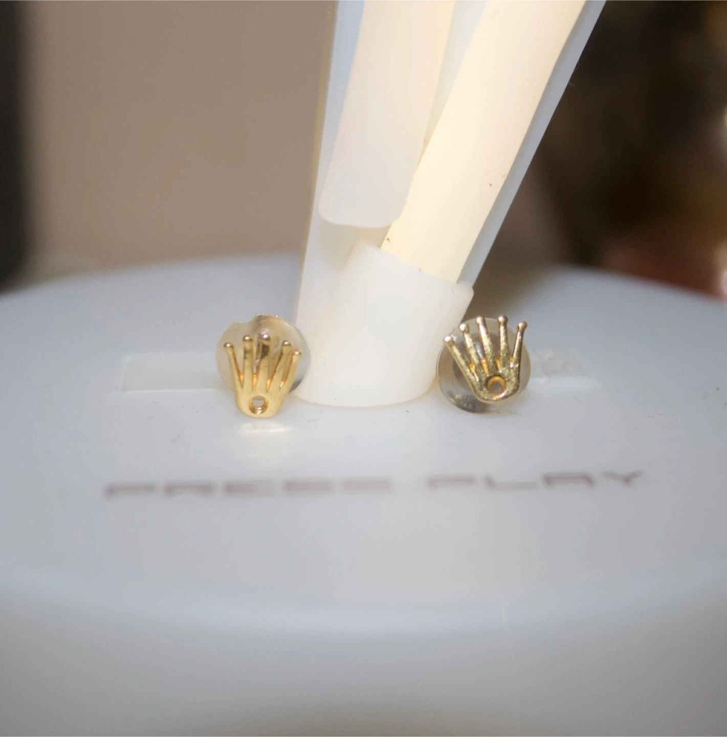 This is hand made 24k men’s crown design earrings pair. Weight around 2.2g. No negotiations
