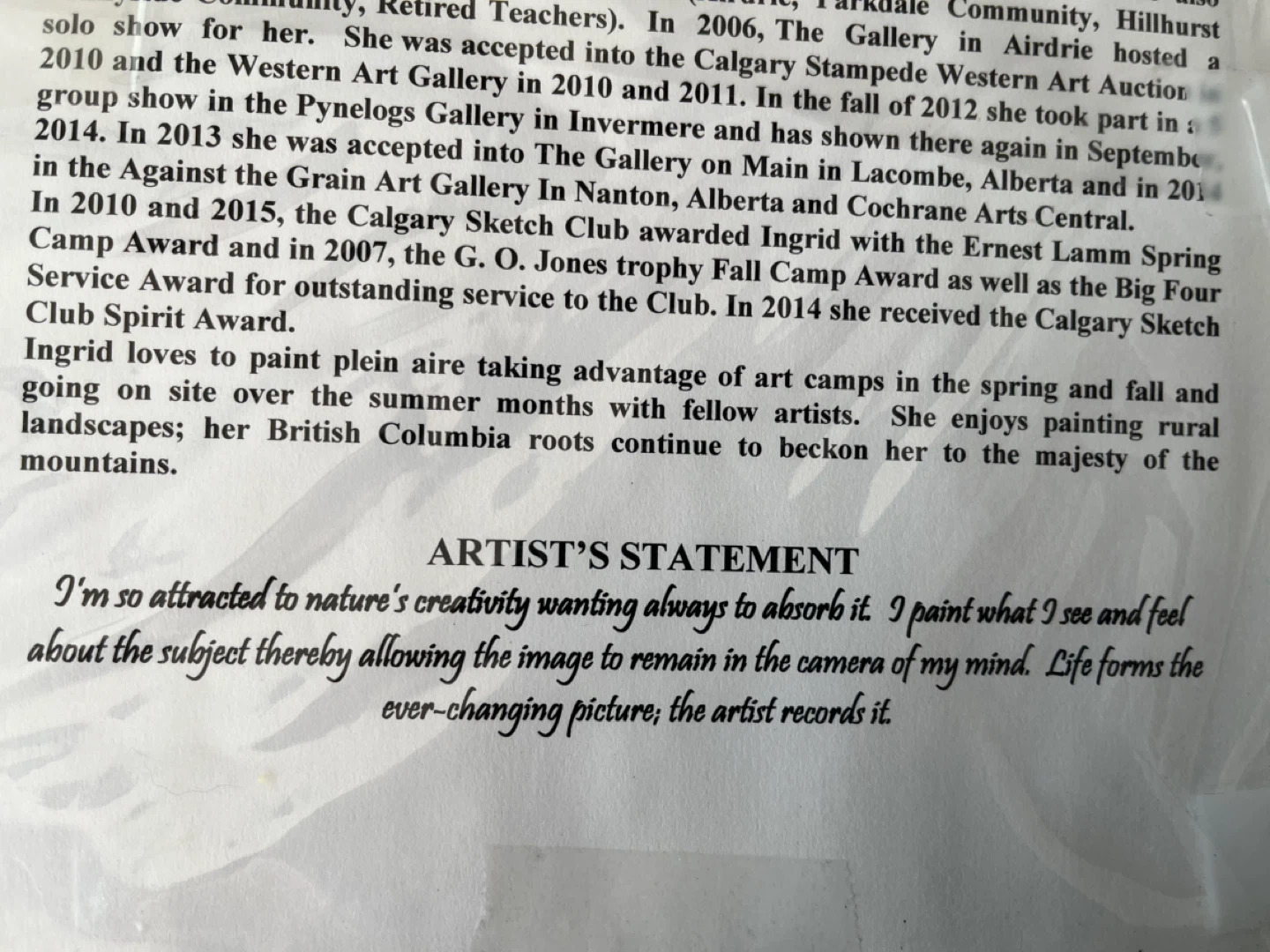 “Fall is Here”, watercolour on Yupo by Ingrid Vincent, 6x9. The artwork is matted to 11x14 inches. It’s probably an “en plein aire” piece, as Ingrid loves to paint outdoors whenever she gets the chance.