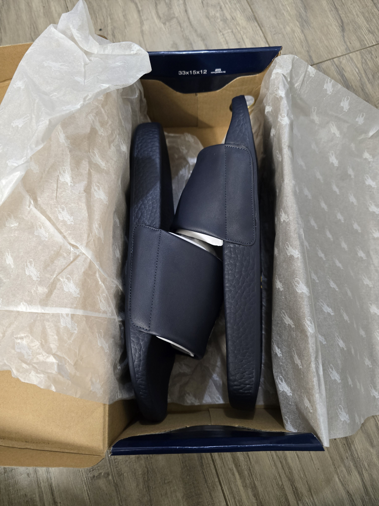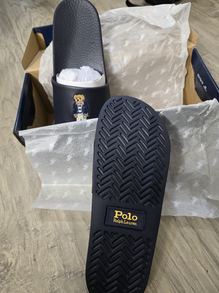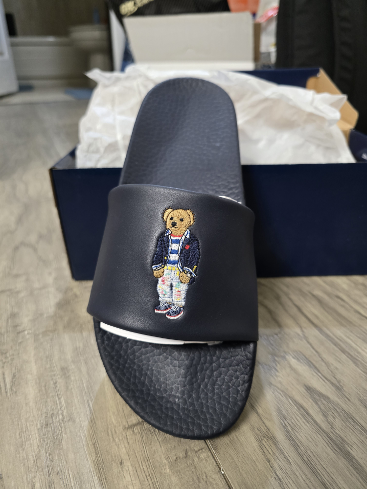 New Polo Ralph Lauren slides. Navy blue colour. Features a cute embroidered bear. Comes in original box.