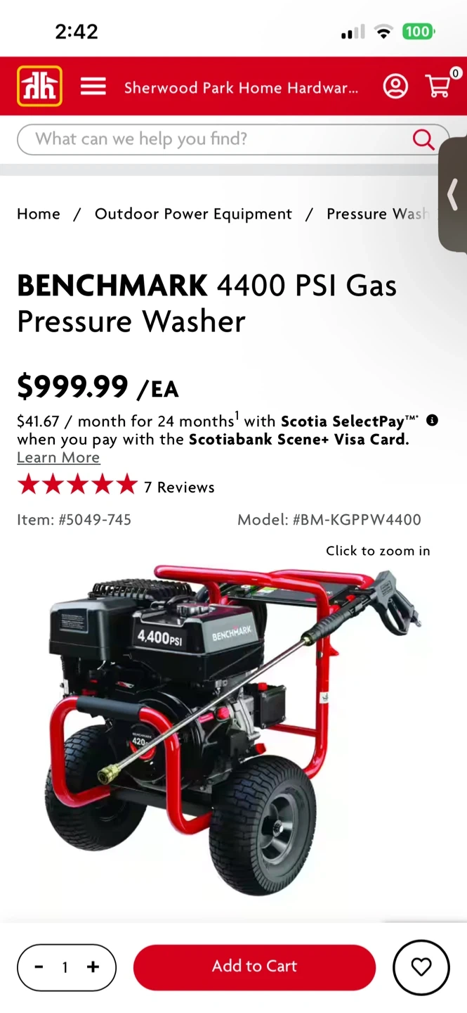 Selling a Benchmark 4400 PSI gas pressure washer. It features a triplex pump and delivers 4.0 GPM. Originally priced at $999.99. Brand new in the box still