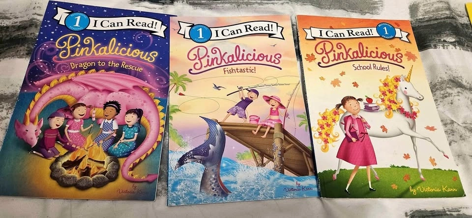 Cute Pinkalicious I Can Read! books by Victoria Kann. These are Beginning Reader Level 1. Includes 'Dragon to the Rescue', 'Fishtastic!', and 'School Rules!'.