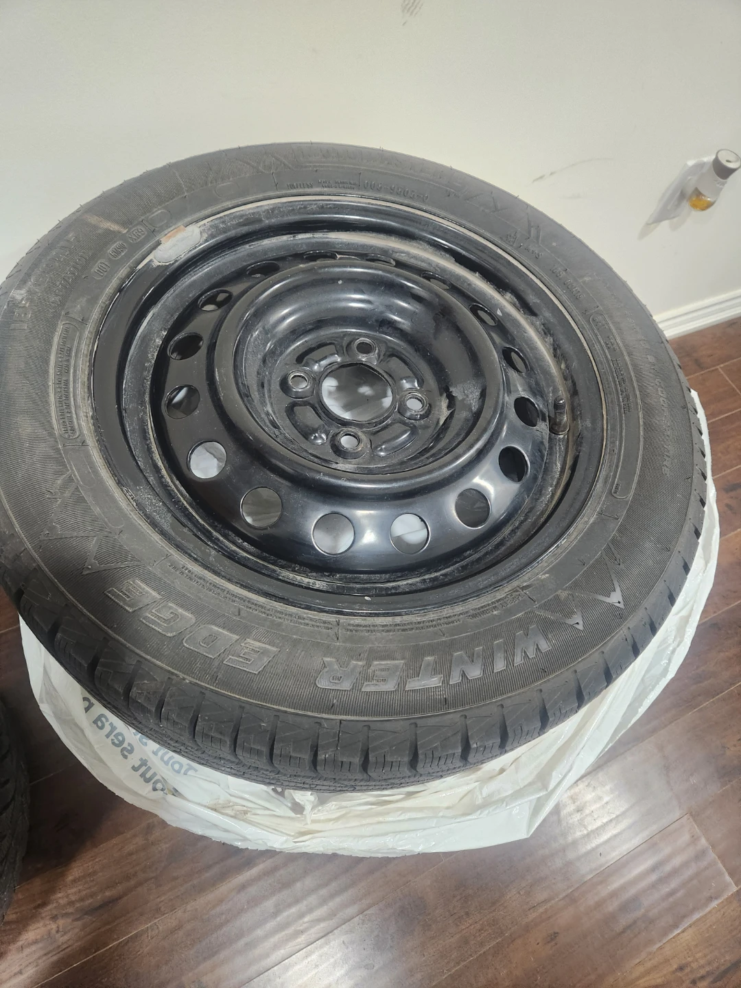 Selling a set of Motomaster Winter tires, size 185/60R15. They're ready to keep you safe on the road this winter! On steel rims 4/114.3 bolt pattern came off nissan versa