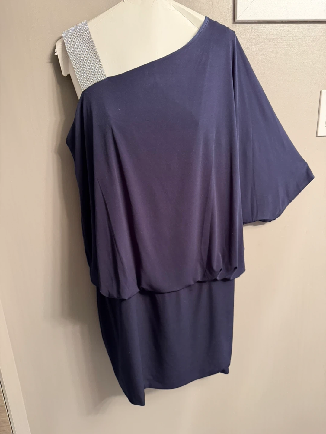 Navy One Shoulder Dress with Blingy Strap
