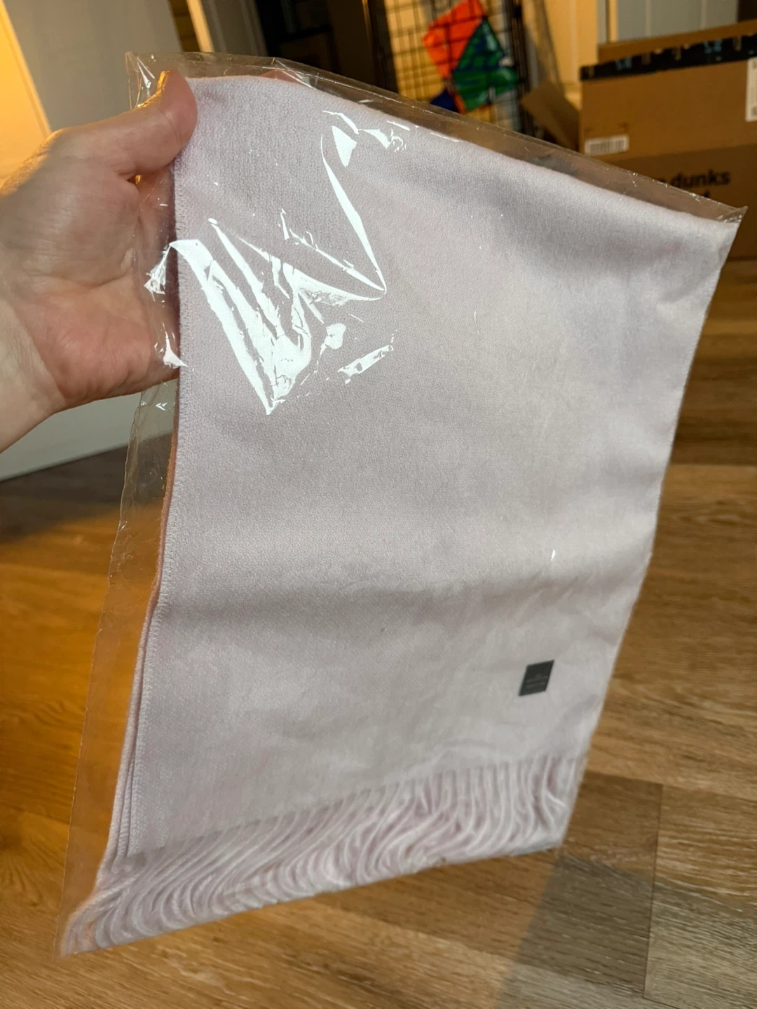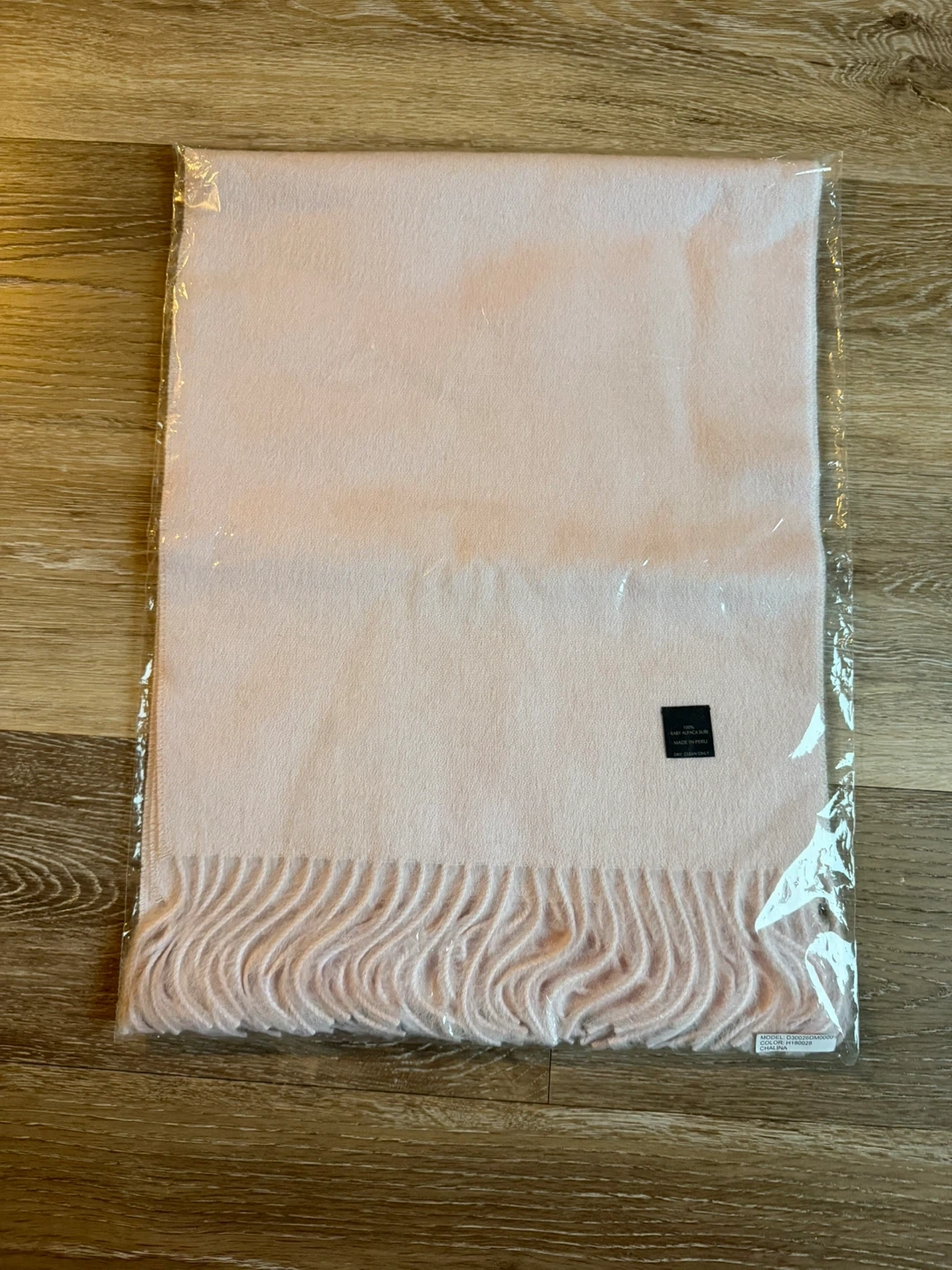 This Tore Di Napoli scarf is made of 100% baby suri alpaca. It's a blush pink color with fringe detailing. Made in Peru. Dry clean only. Original price was $190 on the discount already, selling for even a better price now :)