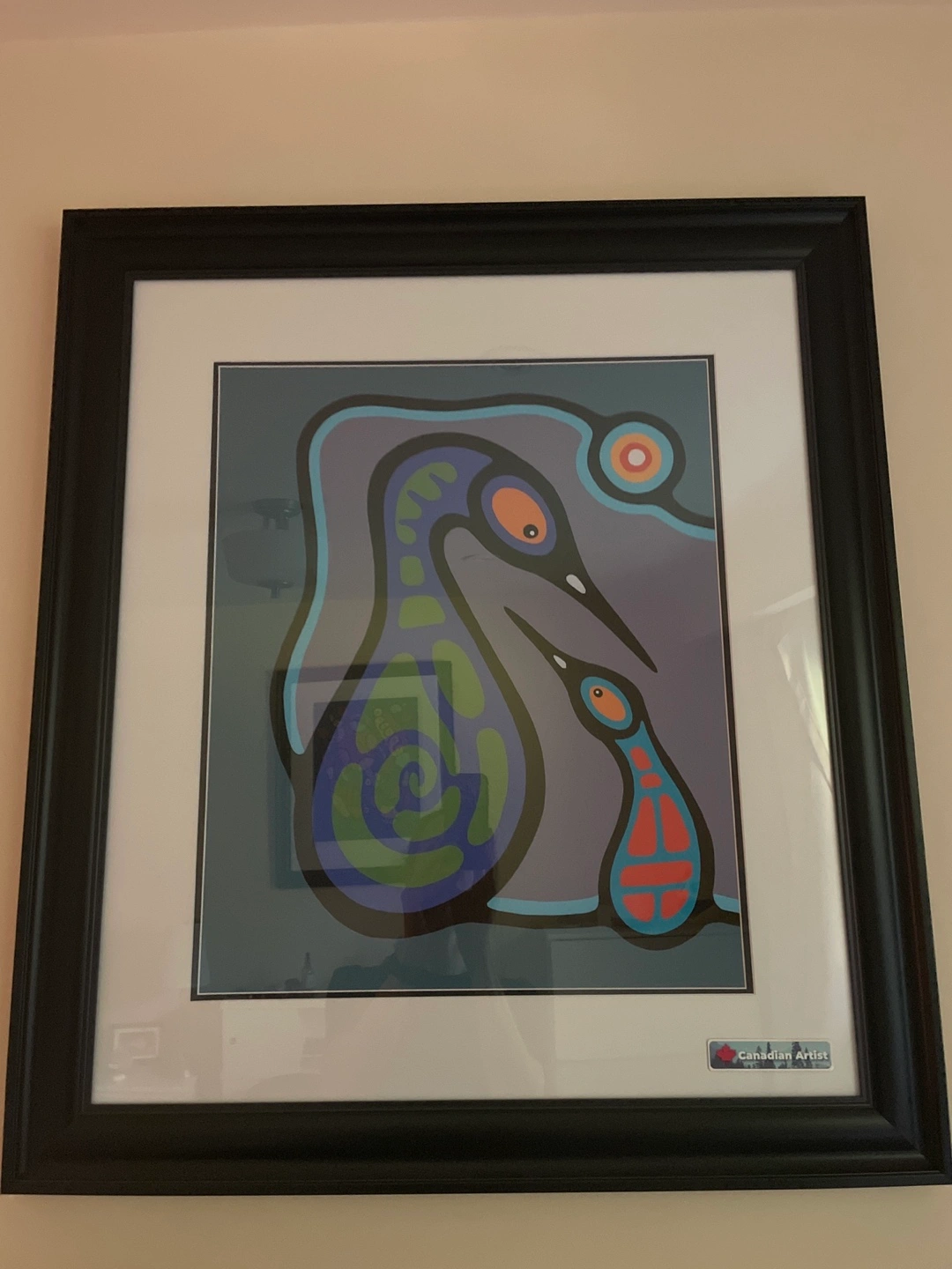 Newly purchased framed print of indigenous artist… son of the famous and late Norval Morrisseau! Great condition and measures 72 x 83 cm. Bruce Morrisseau is the artist. A lovely indigenous print at a great price. The frame is worth the price alone. Really complements the print…#canadiana!