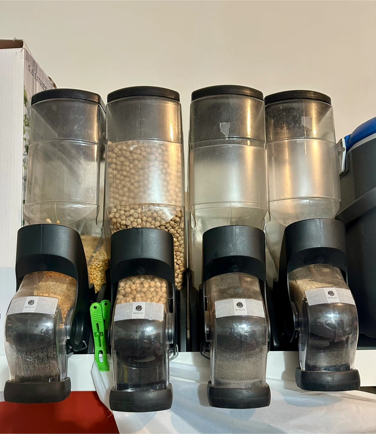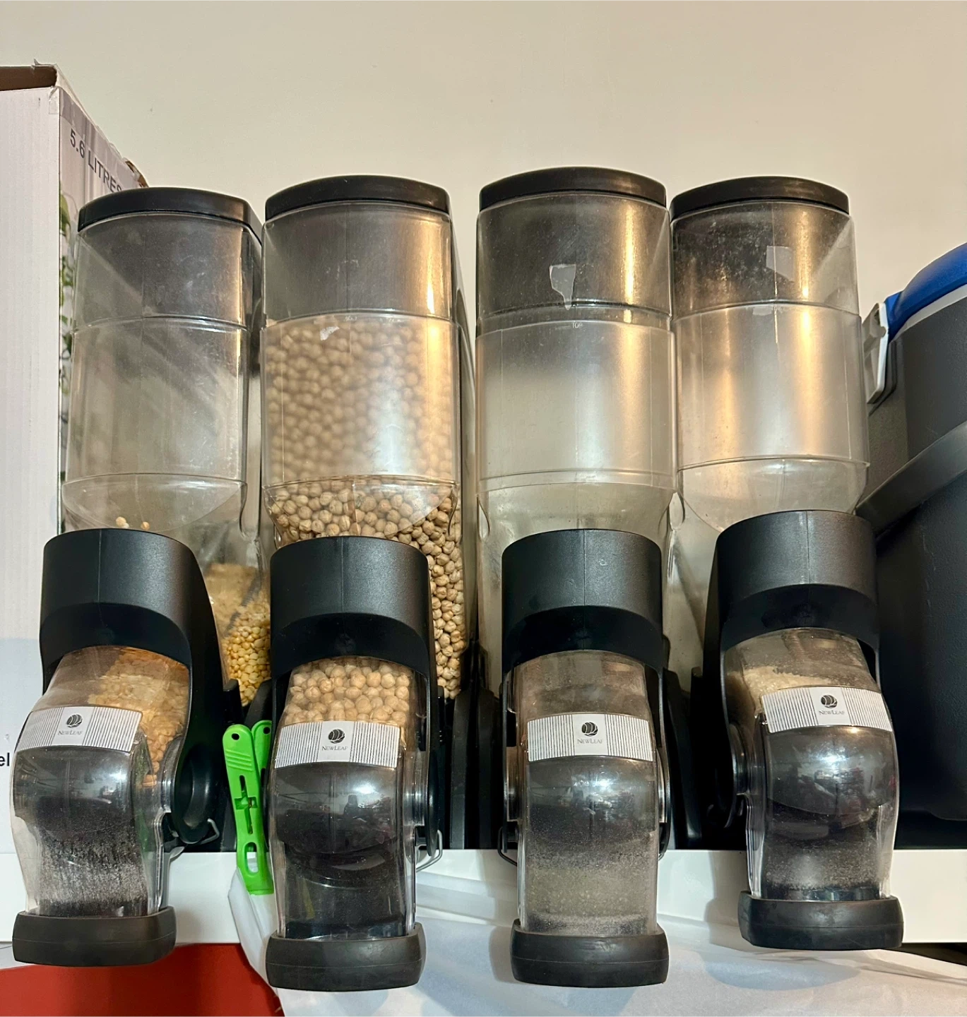 Selling a set of four Joseph Joseph dry food dispensers. They're perfect for keeping your pantry organized and your dry goods fresh. They are in good condition and ready for a new home