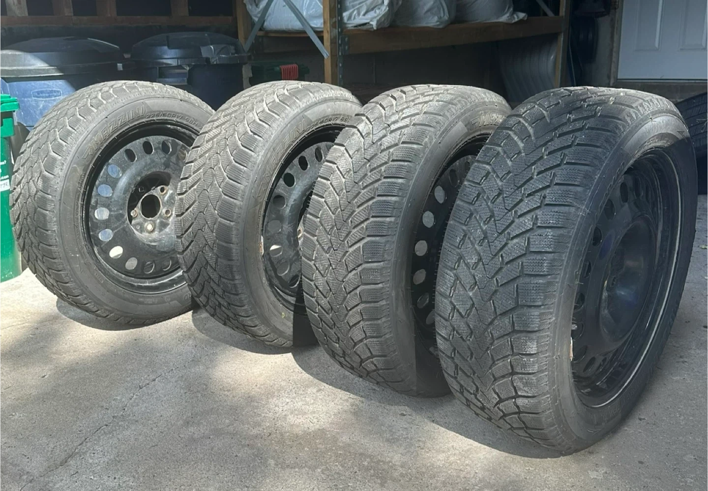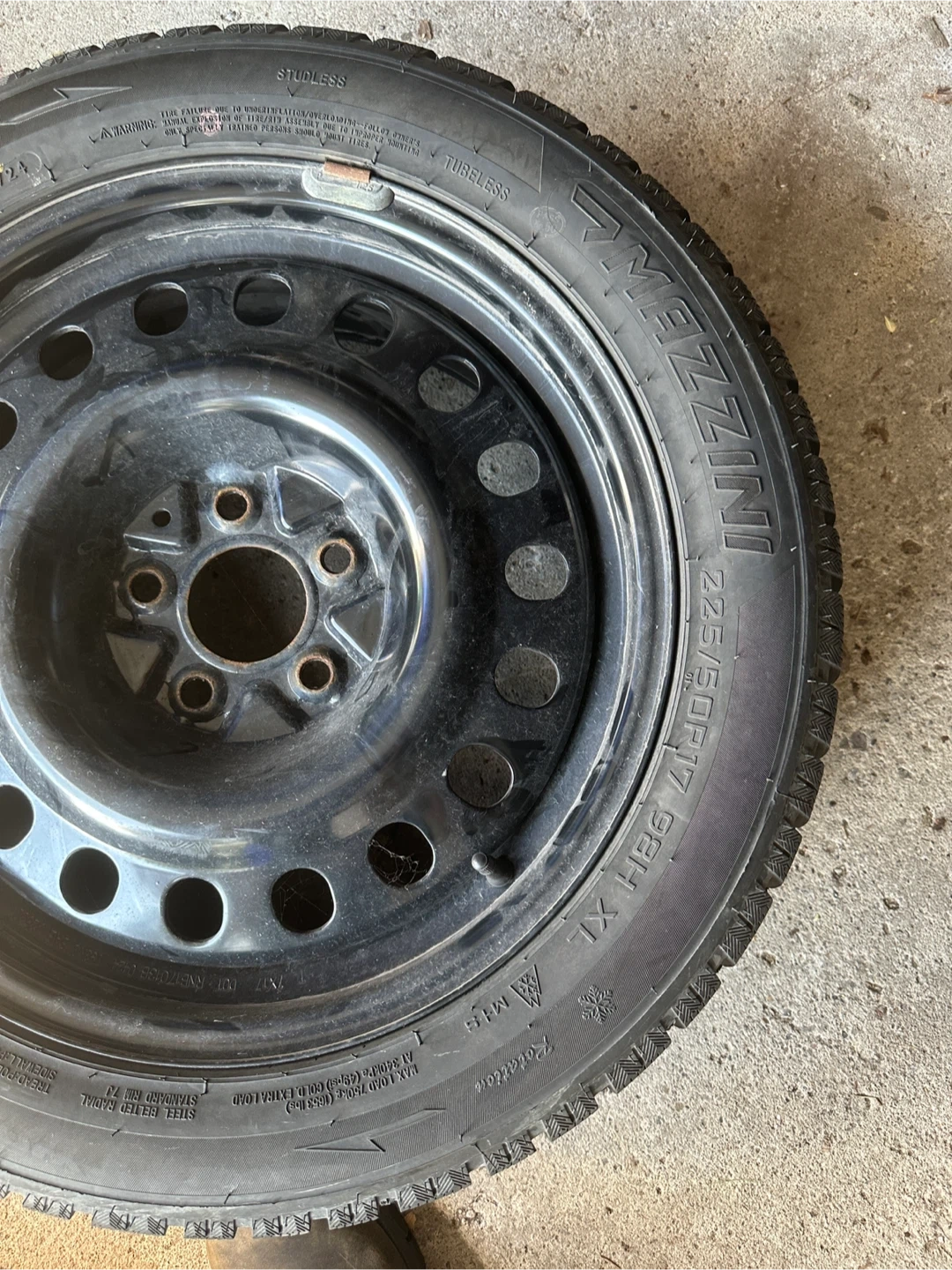 4 Mazzini Snow Leopard winter tires Size 225/50 R17, 5 lug holes per tire. Bolt pattern 5x114.3. Had them on a Ford Fusion. Bought these for winter 2024. No nails, in very good condition. Come with tires on rims (steel)! Balanced and ready to go. I had to get a new vehicle this summer, so these won’t fit on new vehicle. Paid $640 brand new last year, have invoice! Asking for $350. No complaints last winter, worked great. Cash only! Thanks.