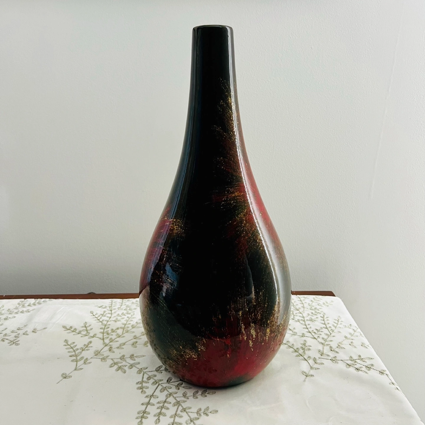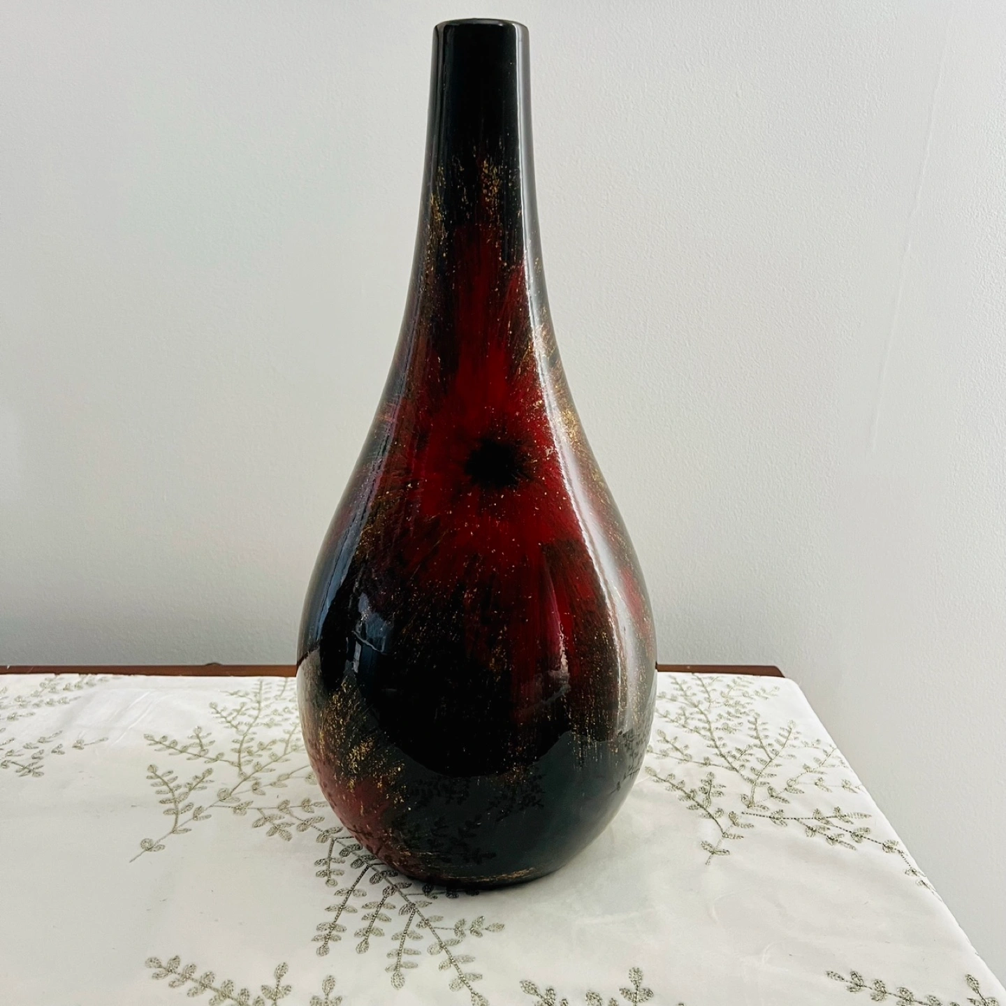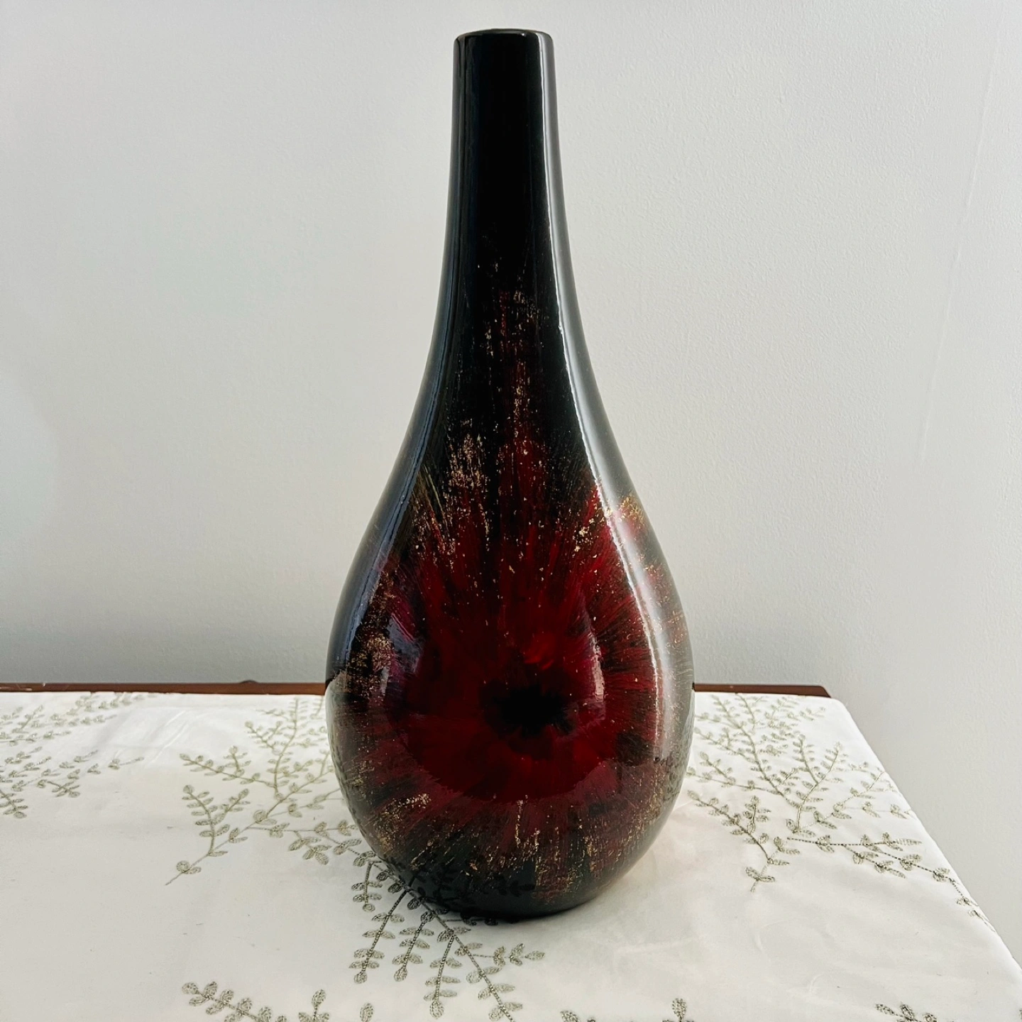 Minimalist black with metallic gold confetti and red accents flower vase