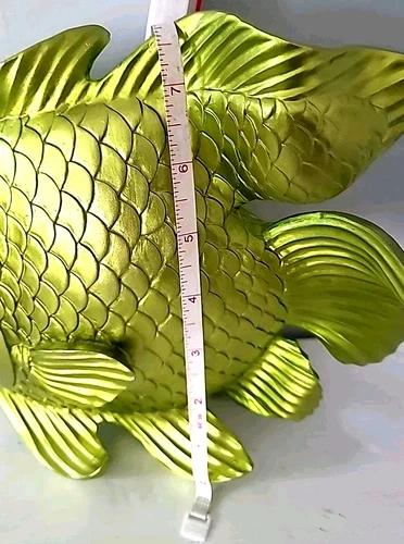 Large Goldfish Sculpture Decor 10x8in Resin Metallic Green Fish