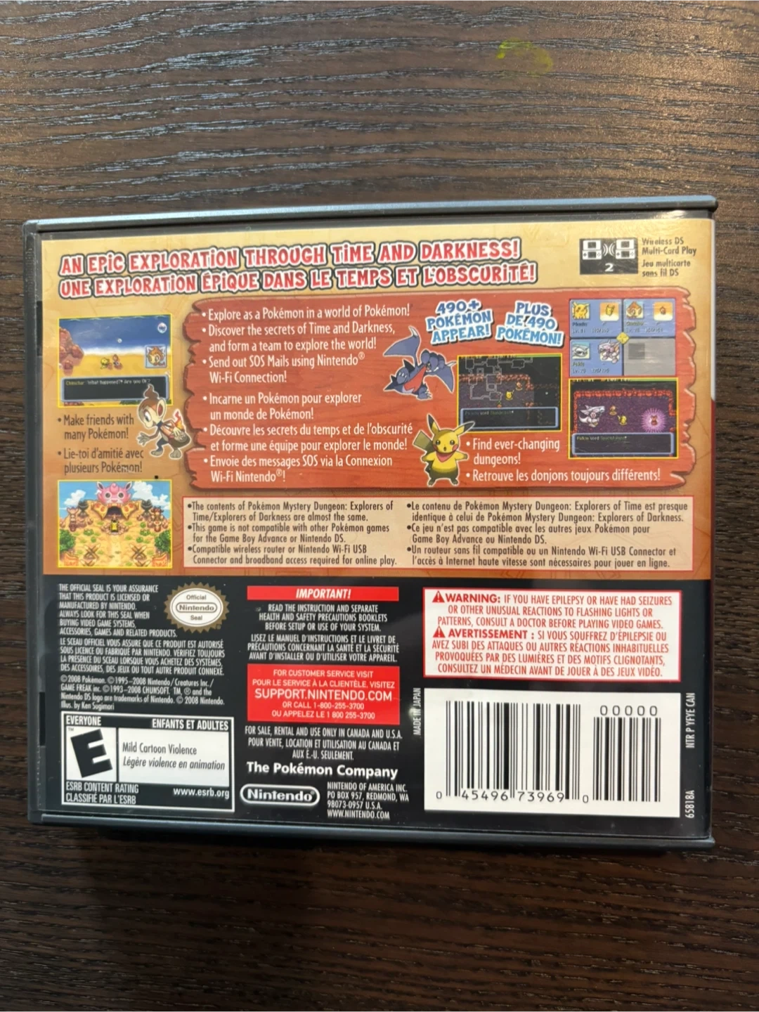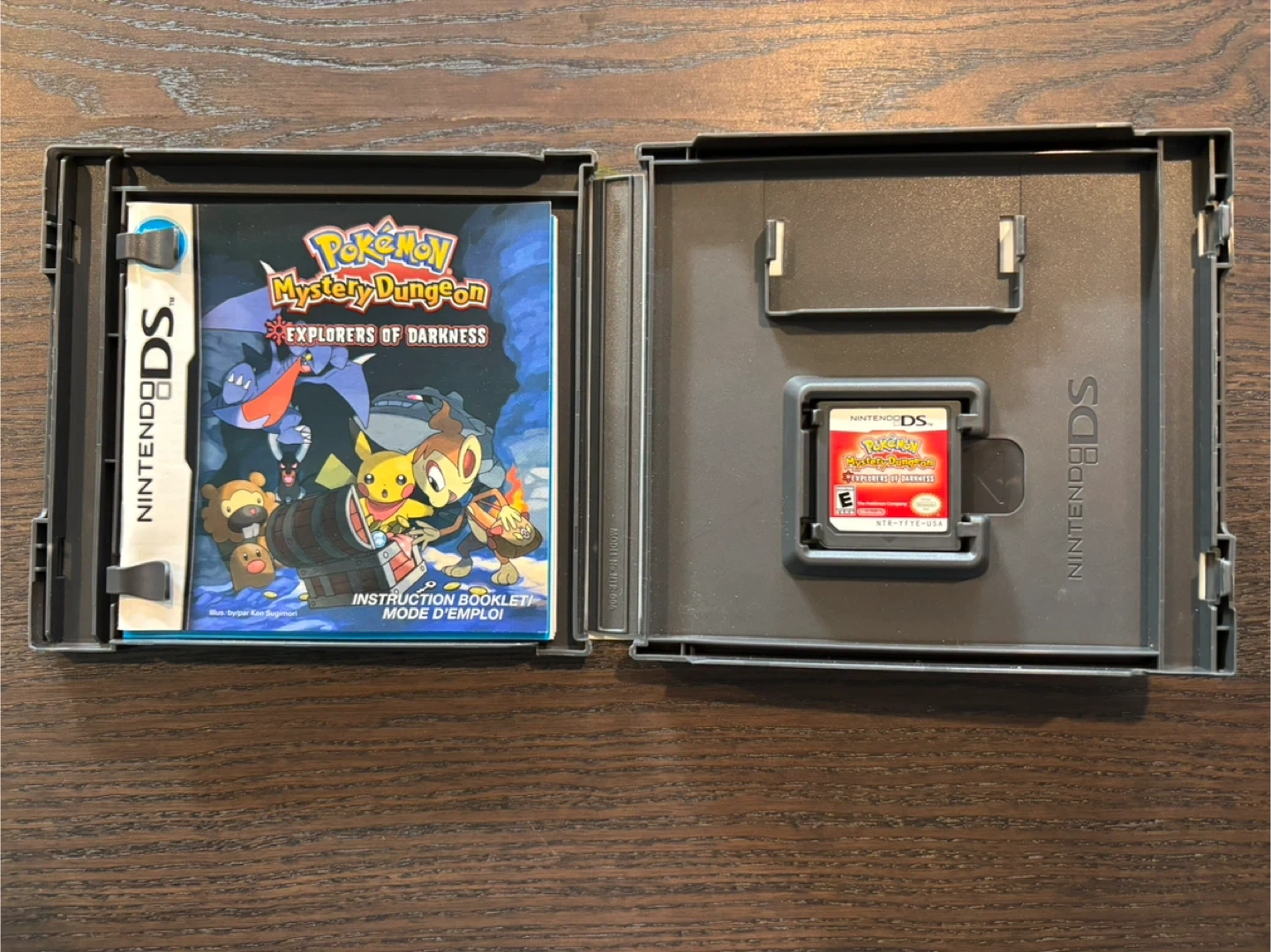 Nintendo DS game cartridge for Pokémon Mystery Dungeon: Explorers of Darkness. Includes the original game case and instruction booklet. Game rated E for Everyone.