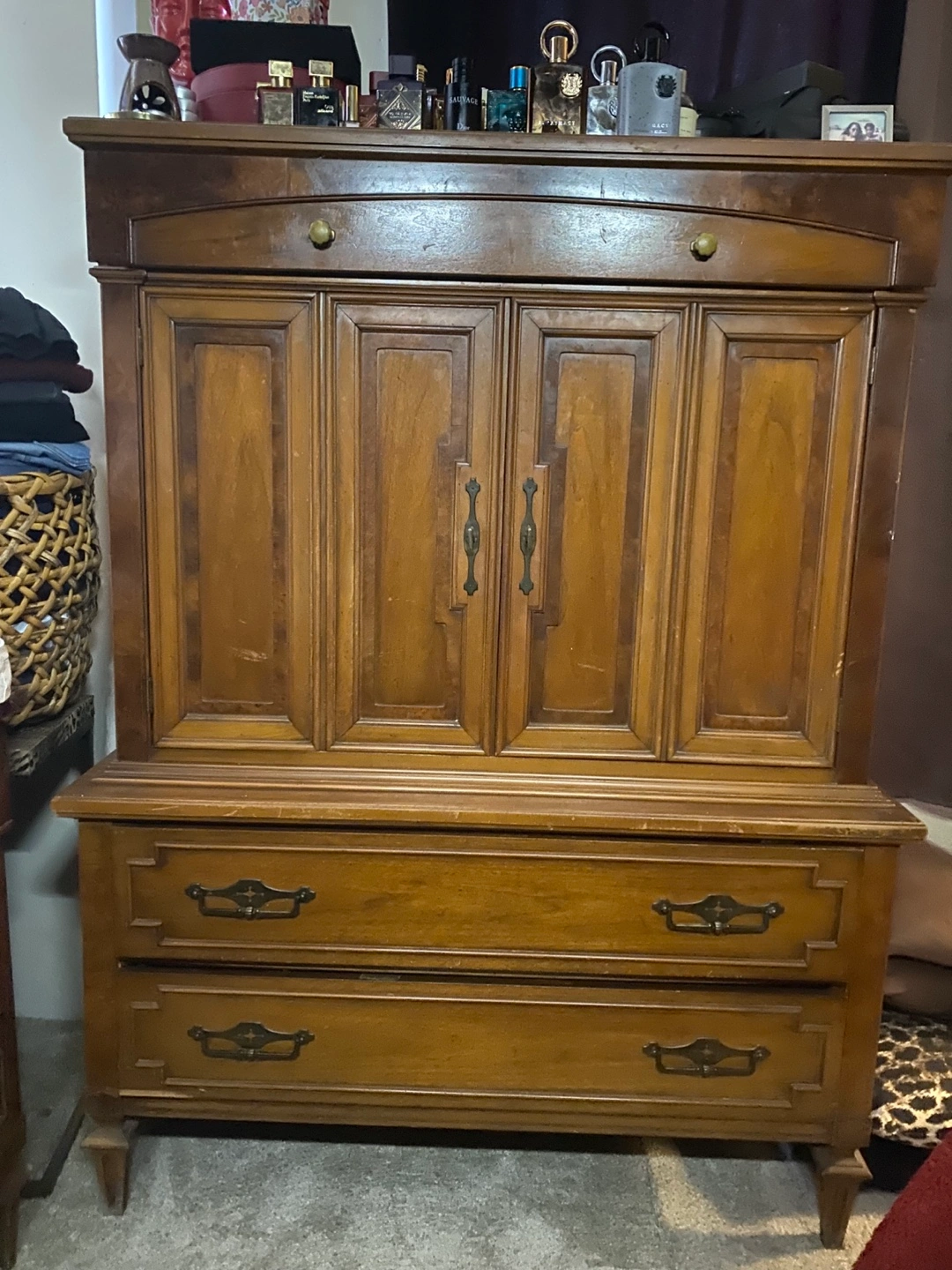 Vintage Wooden Armoire with Drawers