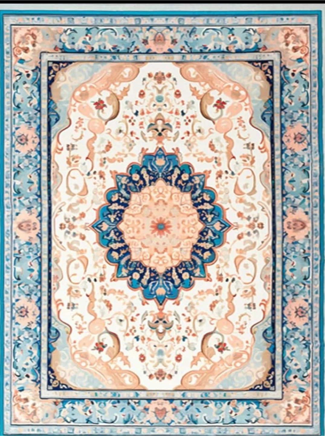 Beautifully soft and bright with bright blues, peachy, white (etc) tones.