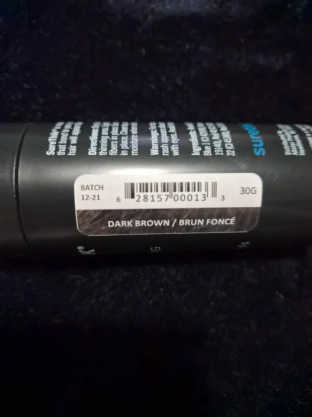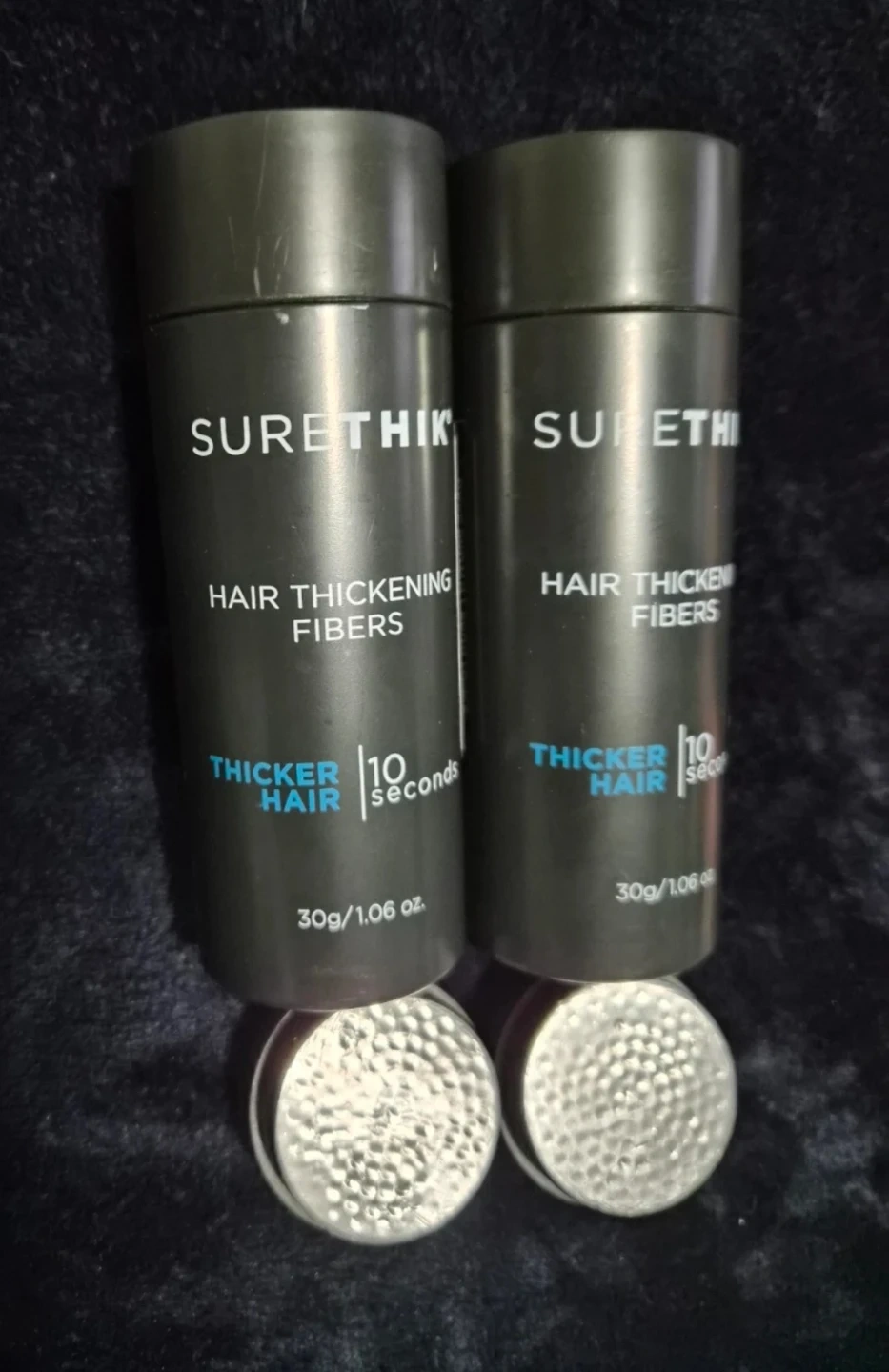 I'm selling two bottles of SureThik hair thickening fibers in dark brown! They help thicken hair in just 10 seconds. Each bottle contains 30g / 1.06 oz. Batch number is 12-21.