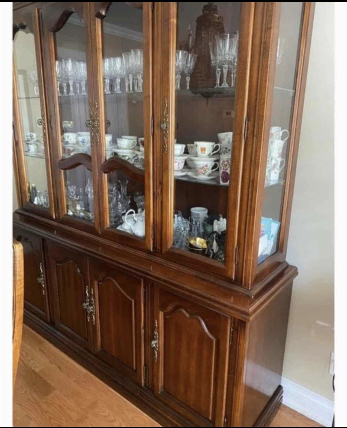 Solid wood china cabinet/Hutch featuring glass-fronted doors and ample shelving.