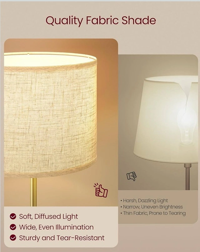 * Features: Quality fabric shade for soft, diffused light, wide and even illumination, sturdy and tear-resistant
