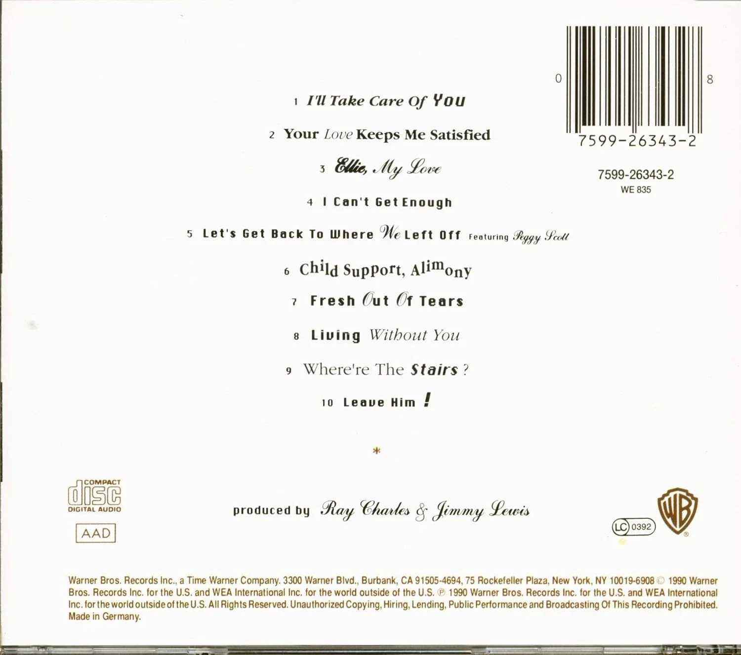 Ray Charles "Would You Believe?" CD. This album was produced by Ray Charles & Jimmy Lewis. Released in 1994.