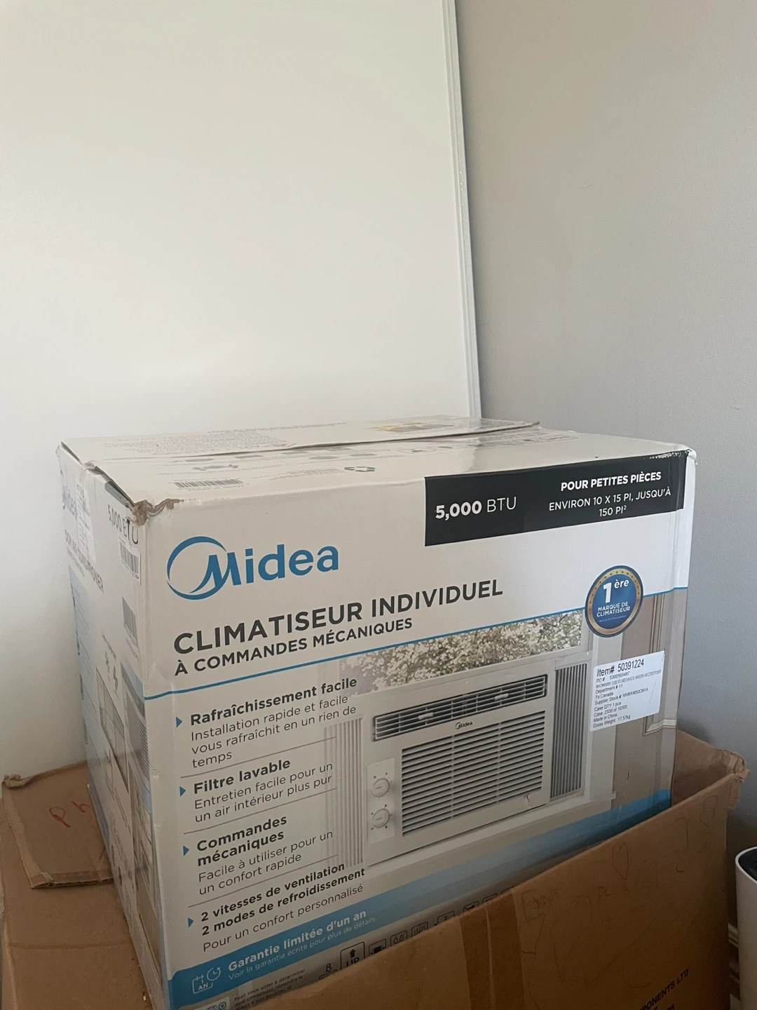 Selling a brand new Midea 5,000 BTU window air conditioner! It's perfect for small spaces up to 150 sq ft. It features easy and quick installation, a washable filter for easy maintenance, and mechanical controls for simple operation. It also has 2 fan speeds and 2 cooling modes for personalized comfort