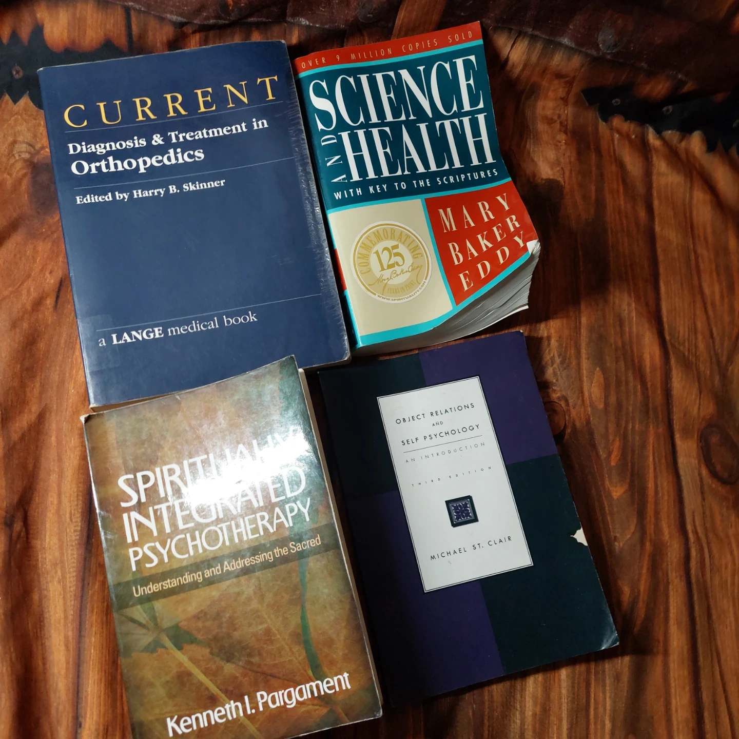 A collection of books covering various topics including psychology, psychotherapy, and theology. Includes titles like 'Spiritually Integrated Psychotherapy', 'DSM-IV-TR in Action', and 'Byzantine Theology'. Perfect for students or professionals in related fields.