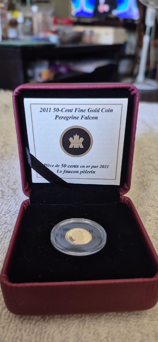 Selling a 2011 Canadian 50 Cents Fine Gold Coin featuring the Peregrine Falcon. It comes in its original box and Certificate from the Royal Canadian Mint. Great for collectors want to add a great Canadian history. price are comparable to other sites selling between $400-$600. open to offers -OBO