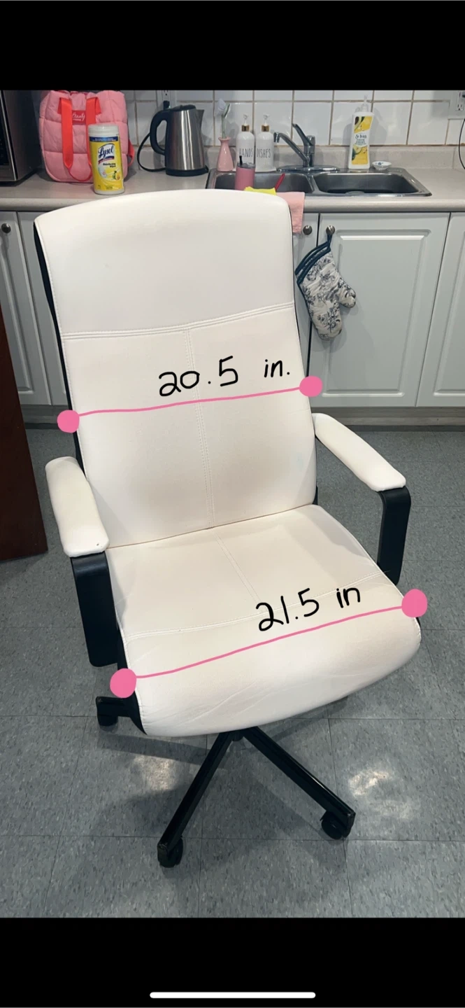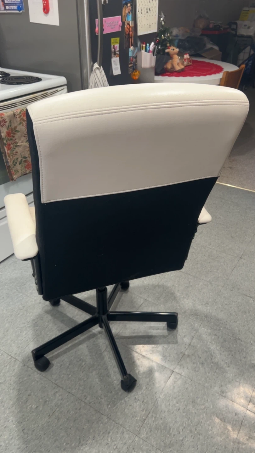 Swivel chair in decent condition, selling since I got a new chair. See picture for measurements. It goes up and down as well with the leaver. It is a well loved chair so I’m accepting offers to negotiate price!