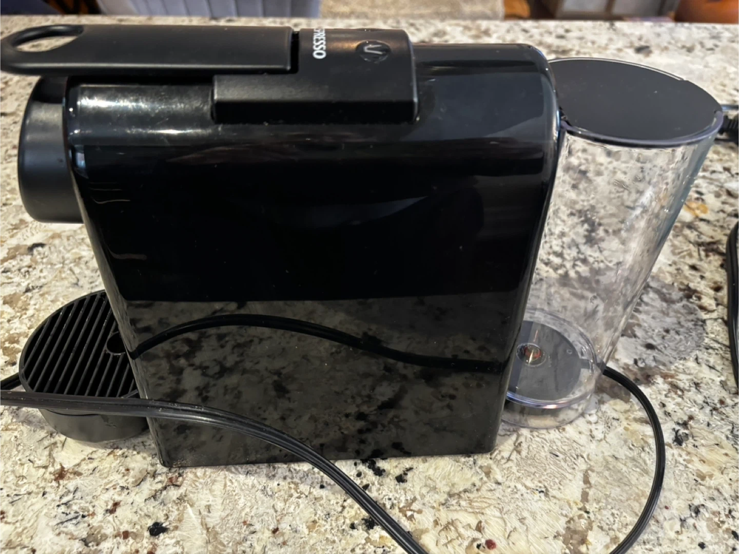 Selling a Nespresso Essenza Mini coffee machine in black. It's super compact, so it doesn't take up much counter space. Perfect for a quick espresso in the morning!
