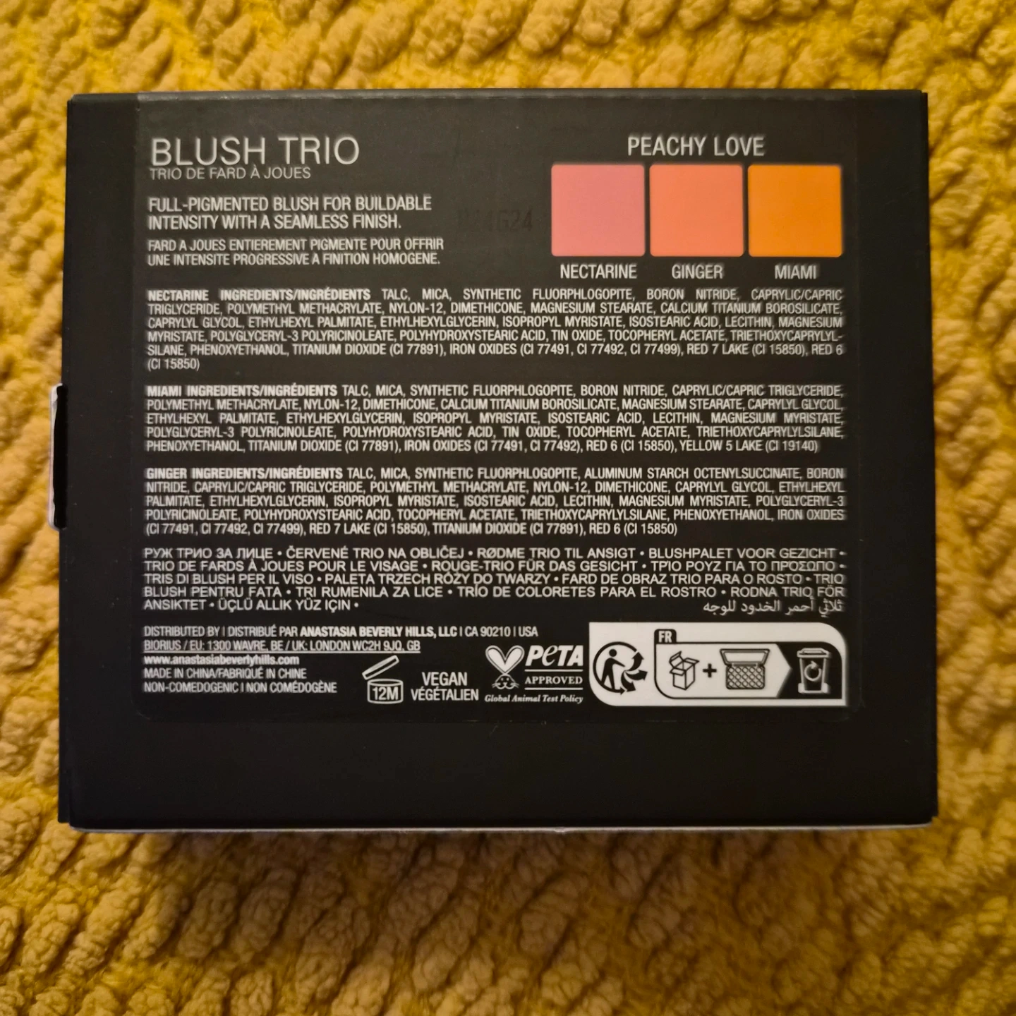 Anastasia Beverly Hills Blush Trio in the shade Peachy Love. This compact features three blendable shades: Nectarine, Ginger, and Miami. Each shade is 3g/0.11 oz. Brand new- Never opened.