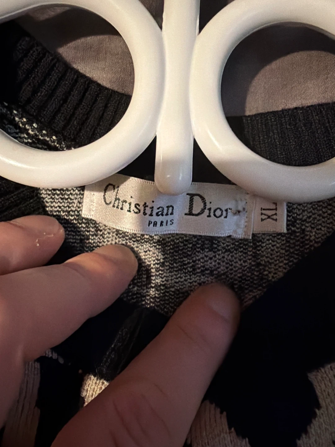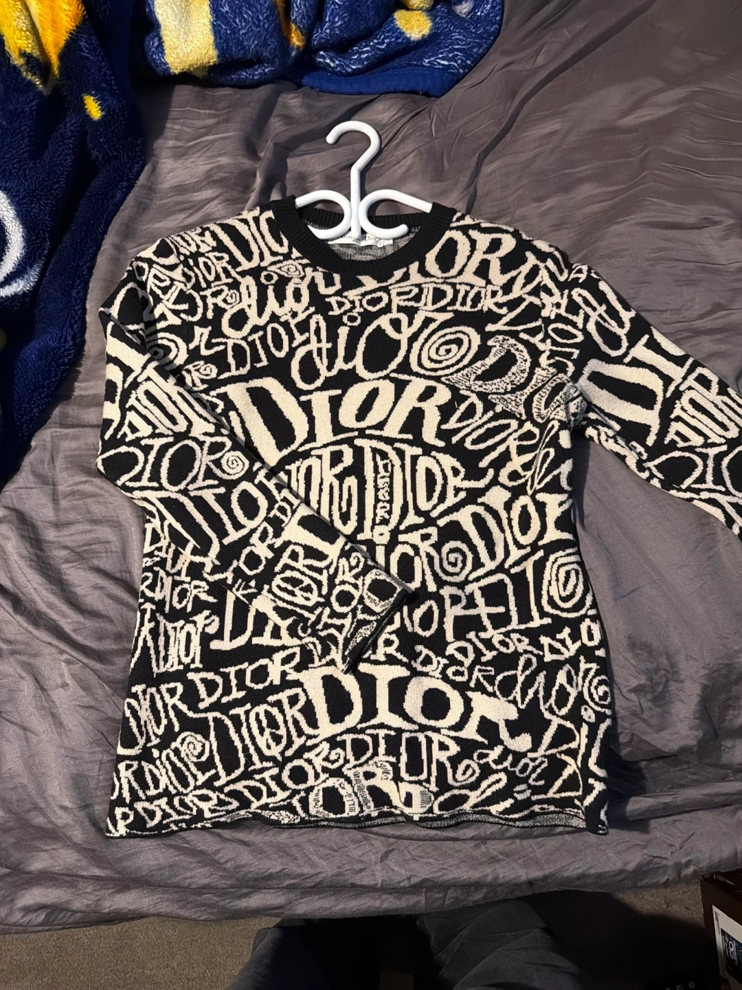 Selling a Christian Dior Paris sweater in size XL. The sweater features an all-over Dior logo print in black and white. It's in great condition and ready for a new wardrobe addition
