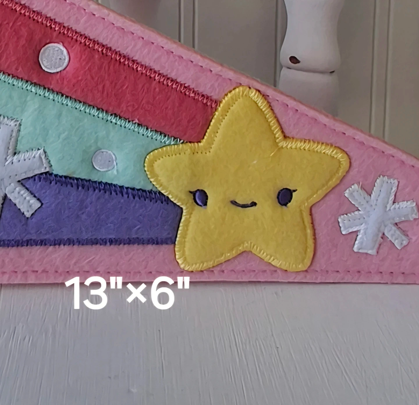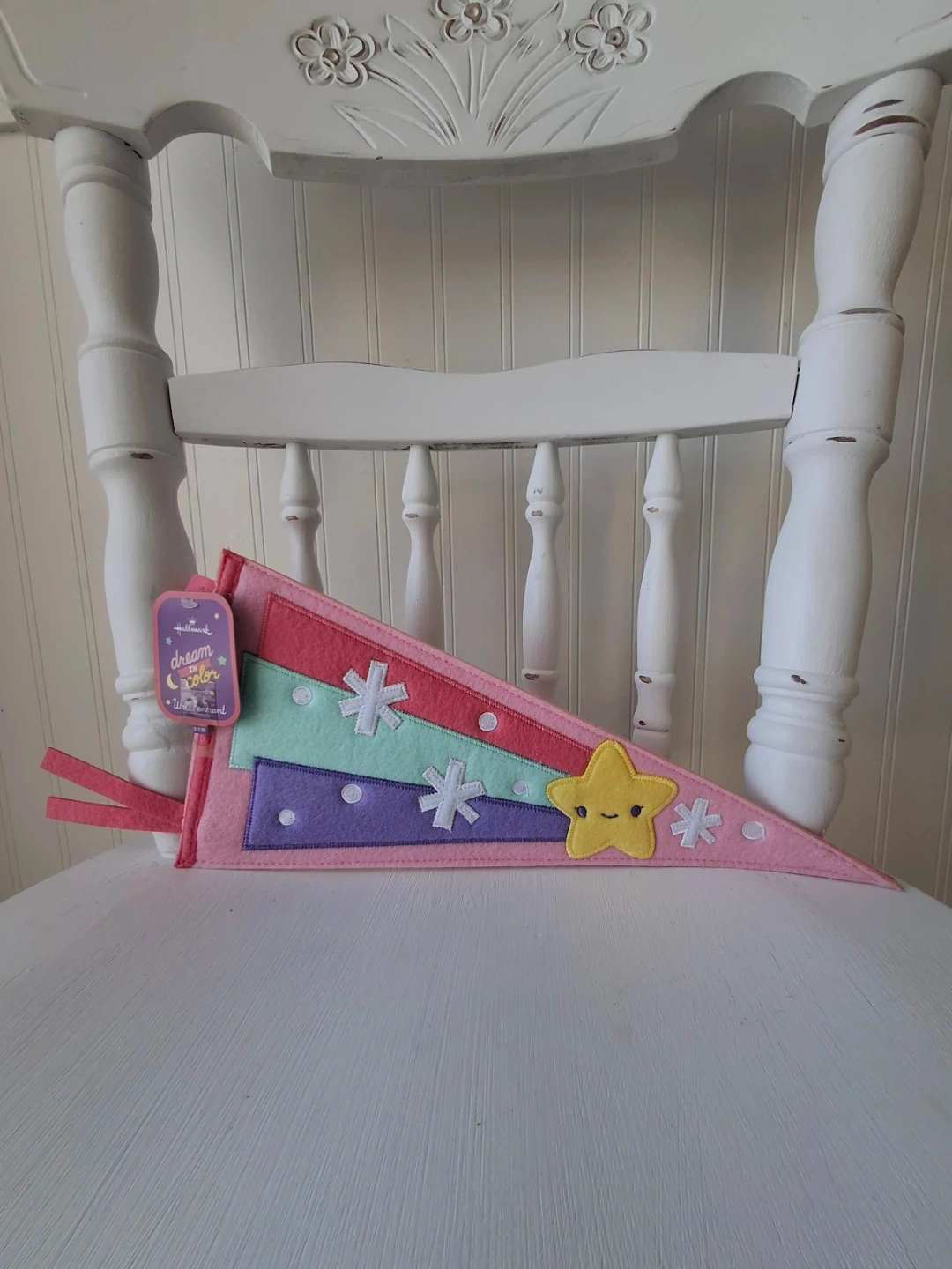 This adorable Hallmark Dream in Color pennant is perfect for adding a touch of whimsy to any room! The pennant features a cute star design and measures 13" x 6". It's made of soft felt and has a lovely pastel colour palette. A sweet addition to your decor