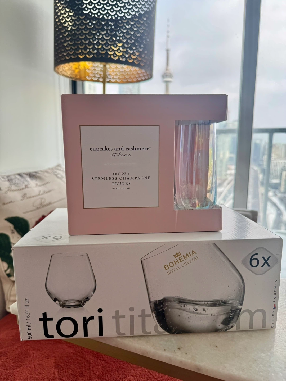 • Cupcakes & Cashmere – Set of 6 stemless champagne flutes (9.5 oz)
