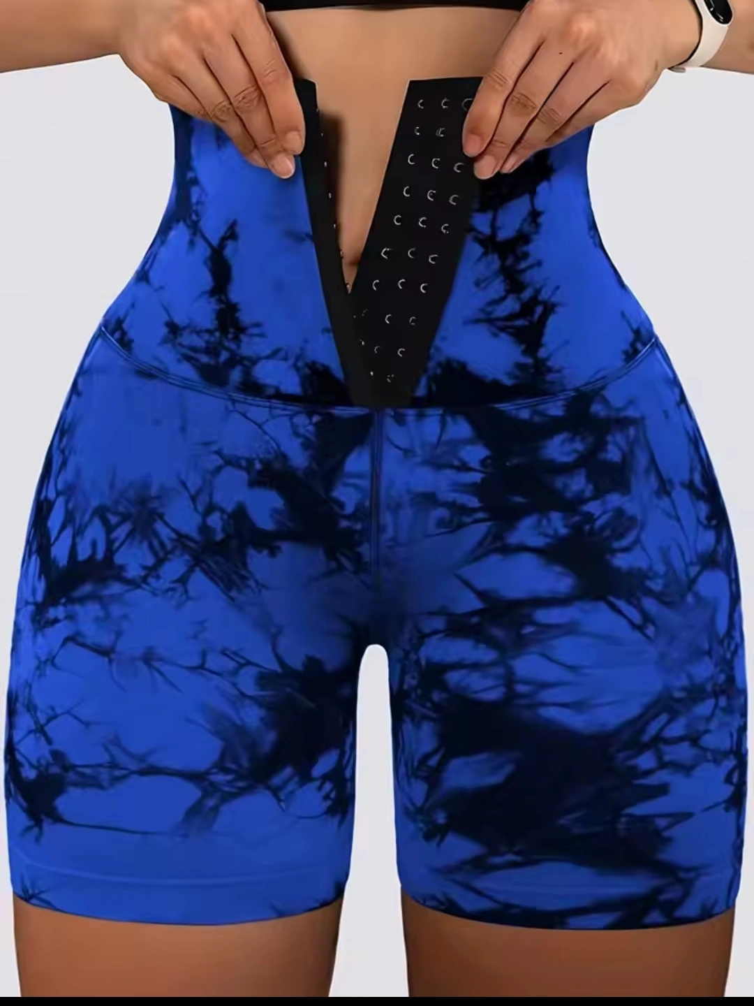 High-Waisted Tie-Dye Biker Tummy Control Butt lifting Shorts