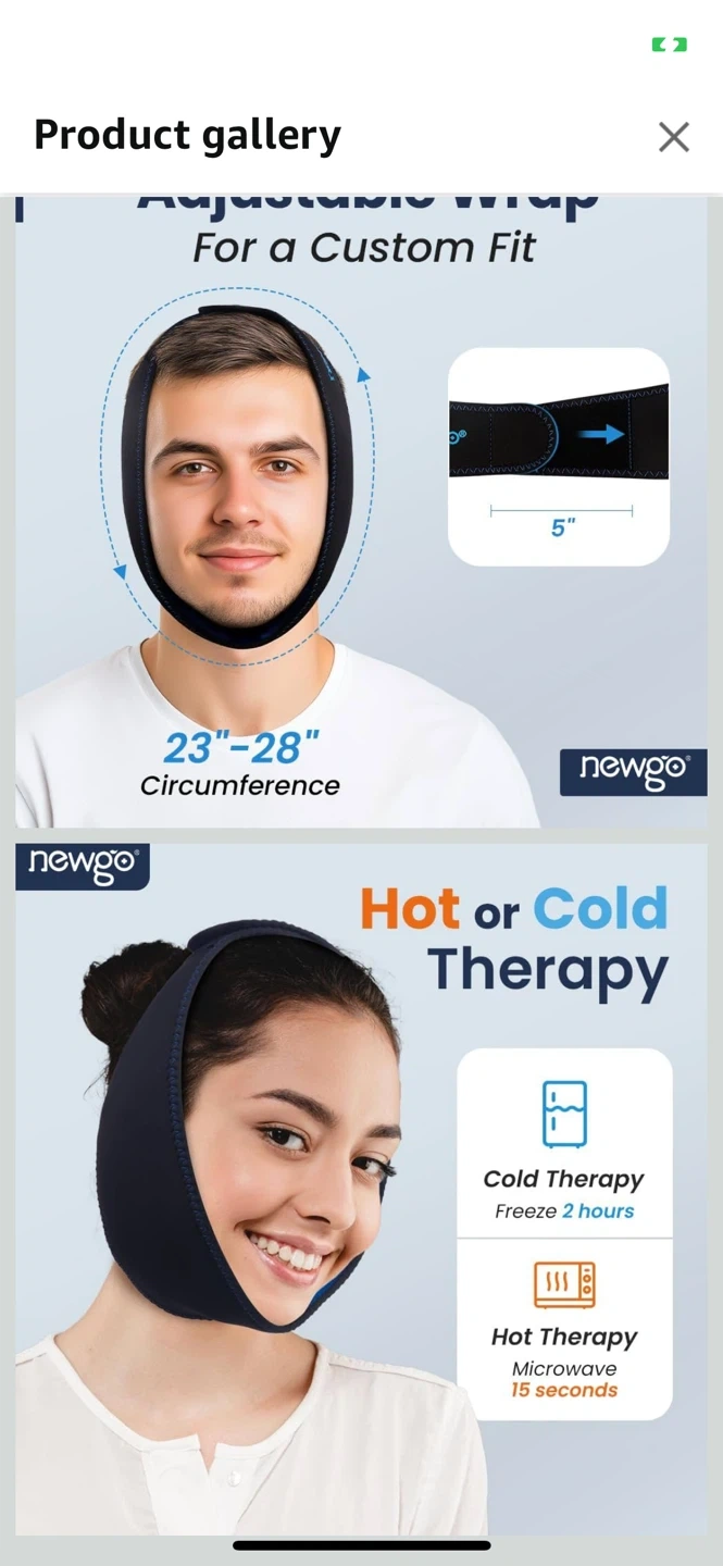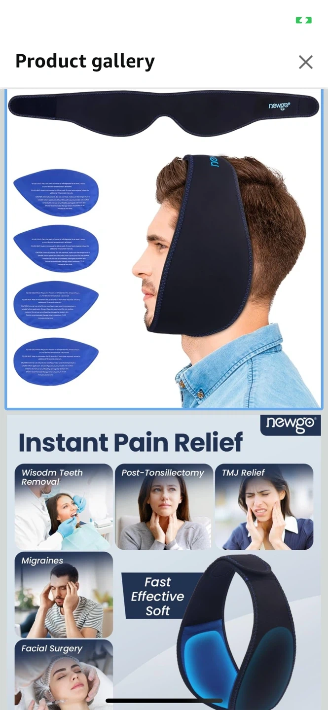 This Newgo Ice Face Wrap is designed for instant pain relief. It's adjustable for a custom fit, with a circumference of 23-28 inches. It can be used for hot or cold therapy. You can freeze it for 2 hours for cold therapy or microwave for 15 seconds for hot therapy. It's soft and effective for wisdom teeth removal, post-tonsillectomy, TMJ relief, migraines, facial surgery, and more Pick up at Islington /401 / bergamot avenue Etobicoke.