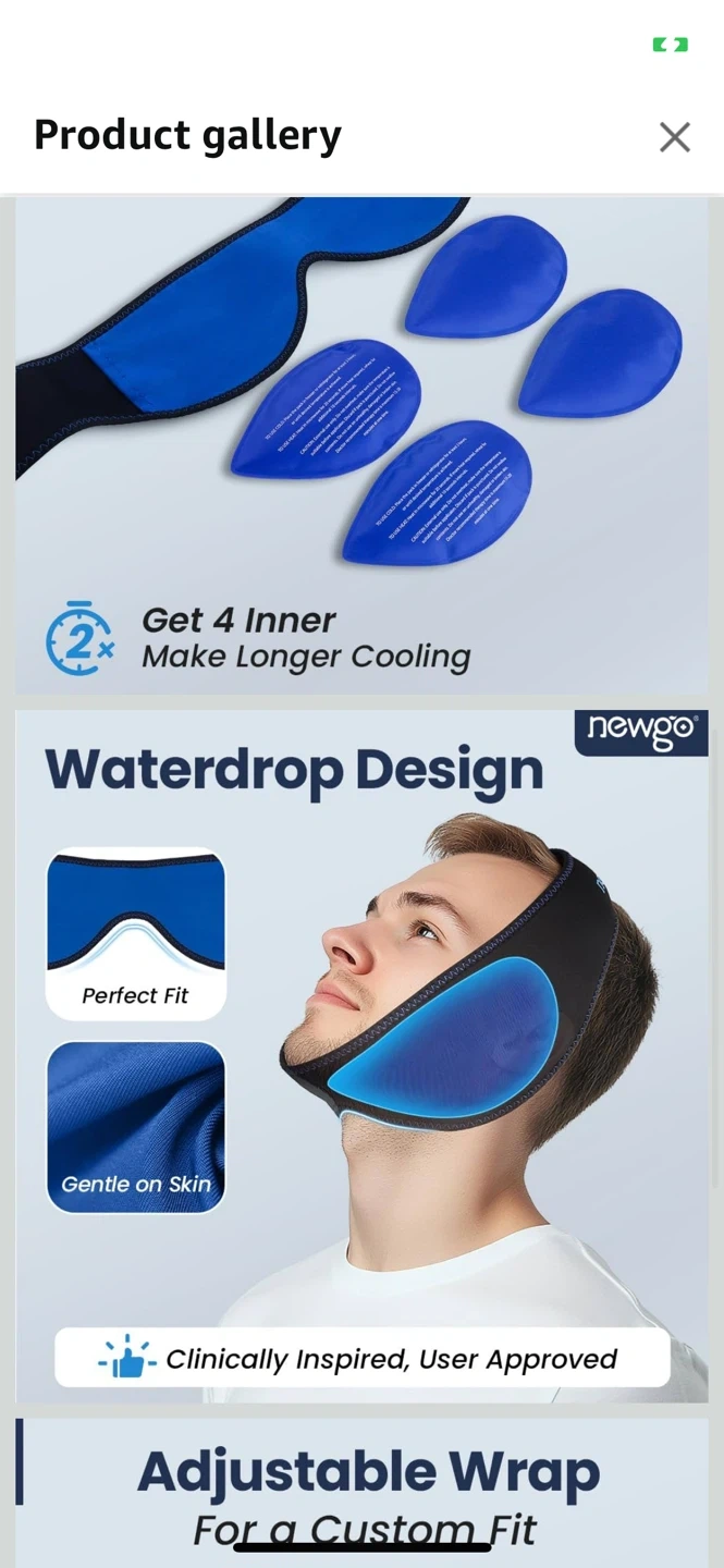 This Newgo Ice Face Wrap is designed for instant pain relief. It's adjustable for a custom fit, with a circumference of 23-28 inches. It can be used for hot or cold therapy. You can freeze it for 2 hours for cold therapy or microwave for 15 seconds for hot therapy. It's soft and effective for wisdom teeth removal, post-tonsillectomy, TMJ relief, migraines, facial surgery, and more Pick up at Islington /401 / bergamot avenue Etobicoke.