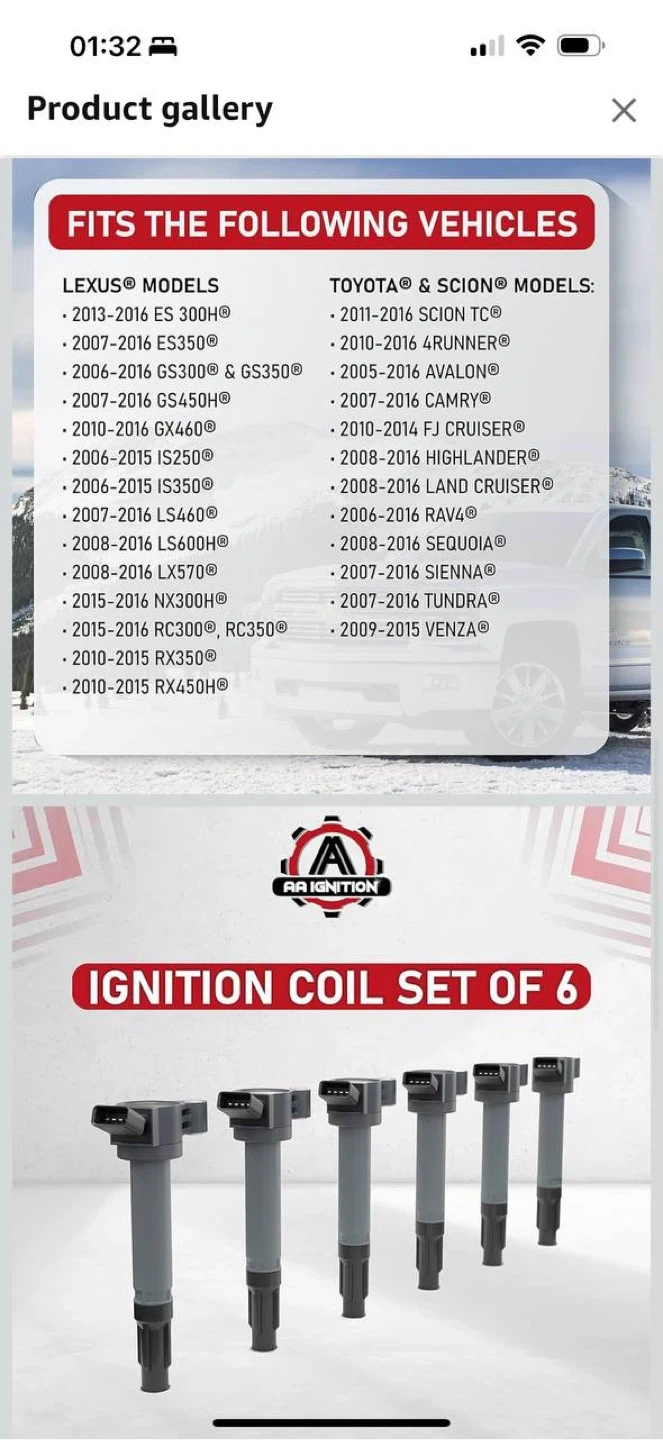 Direct OEM replacement ignition coils for many Toyota & Lexus V6 engines.
