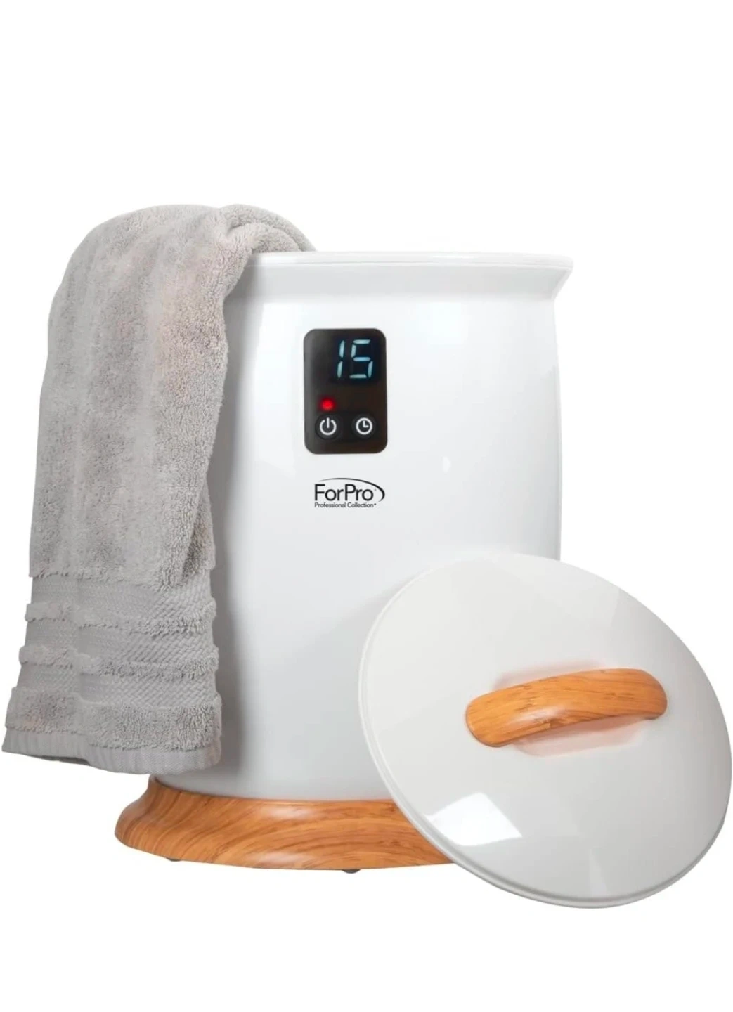 This electric towel warmer is from ForPro Professional Collection. It features a digital display and a timer function. Dimensions are 14.5" W x 13" D x 19" H. It's designed for warming towels.