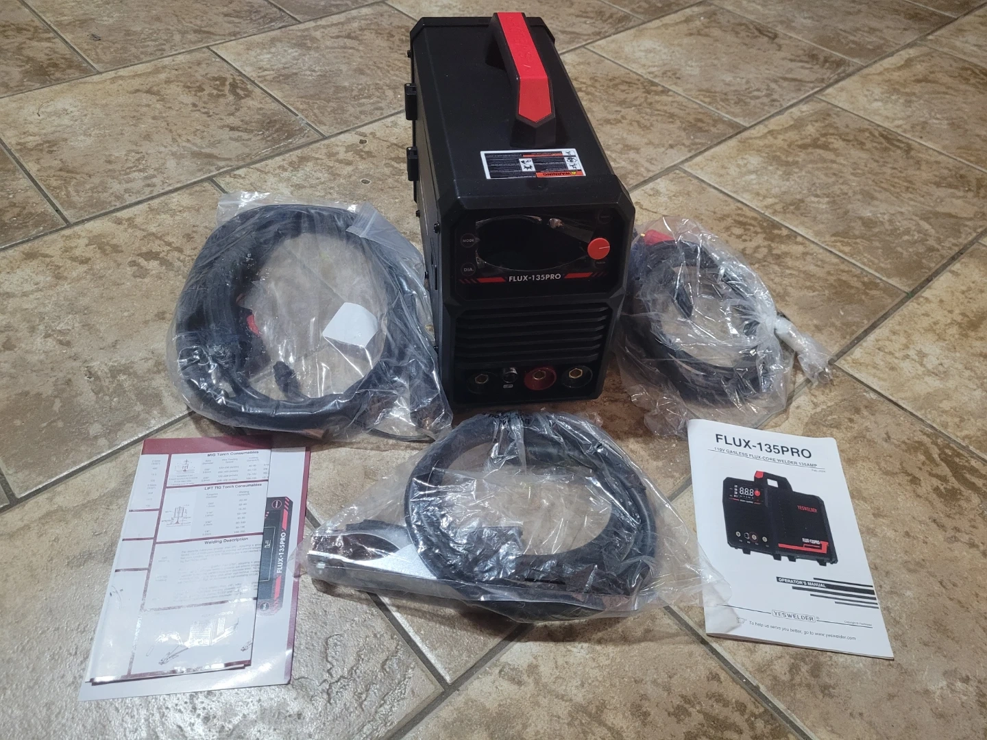 This is a YESWELDER FLUX-135PRO flux welder. It's a portable and versatile welding machine. Includes all original cables and manuals.