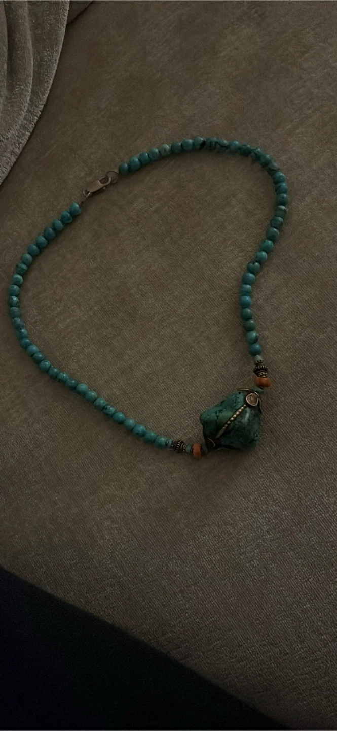 Turquoise Beaded Necklace with Large Pendant