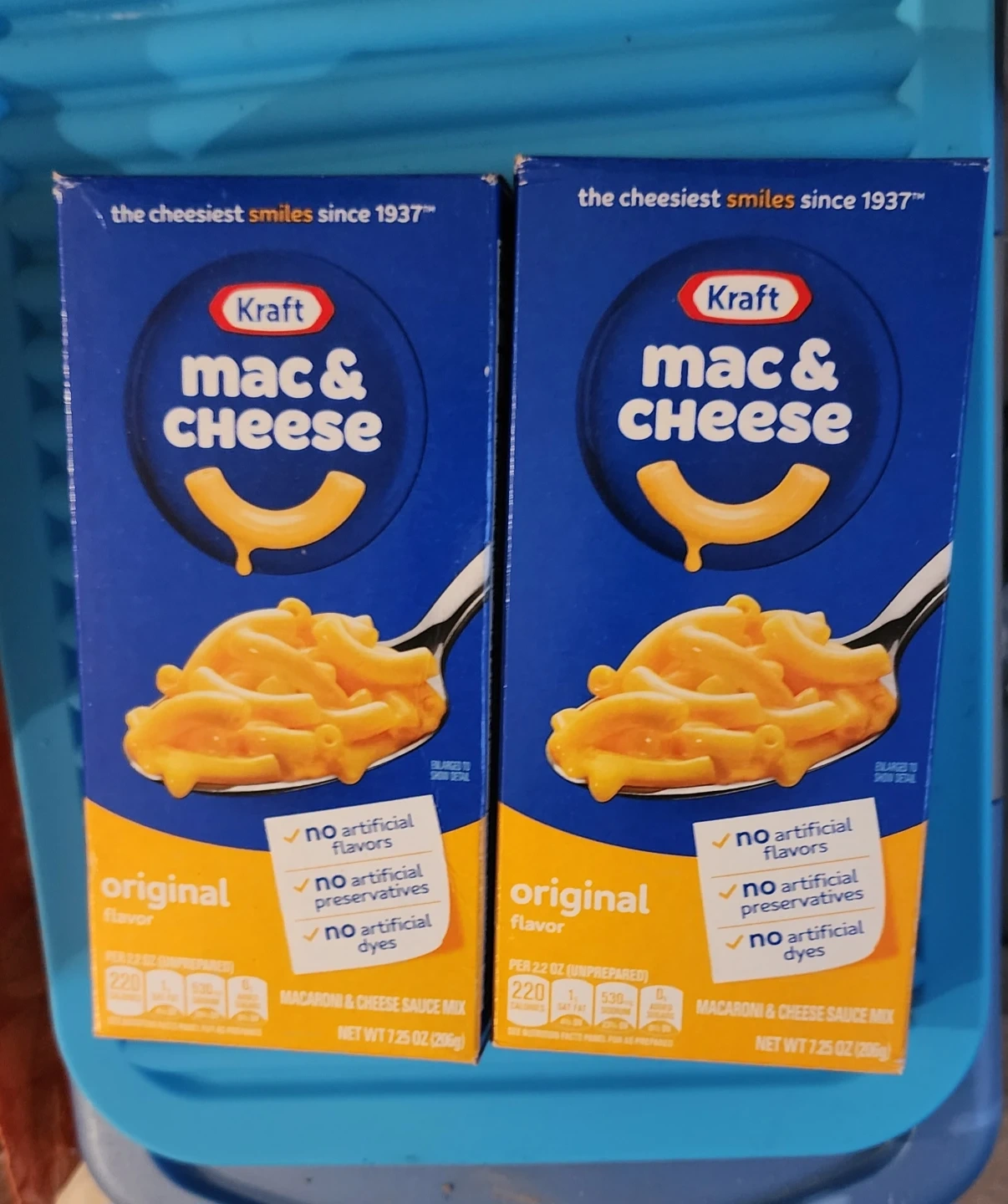 20 boxes of Kraft Macaroni & Cheese Original Flavor. Each box contains 7.25 oz (206g) of macaroni and cheese sauce mix. No artificial flavors, preservatives, or dyes. This is a pantry staple for quick and easy meals!