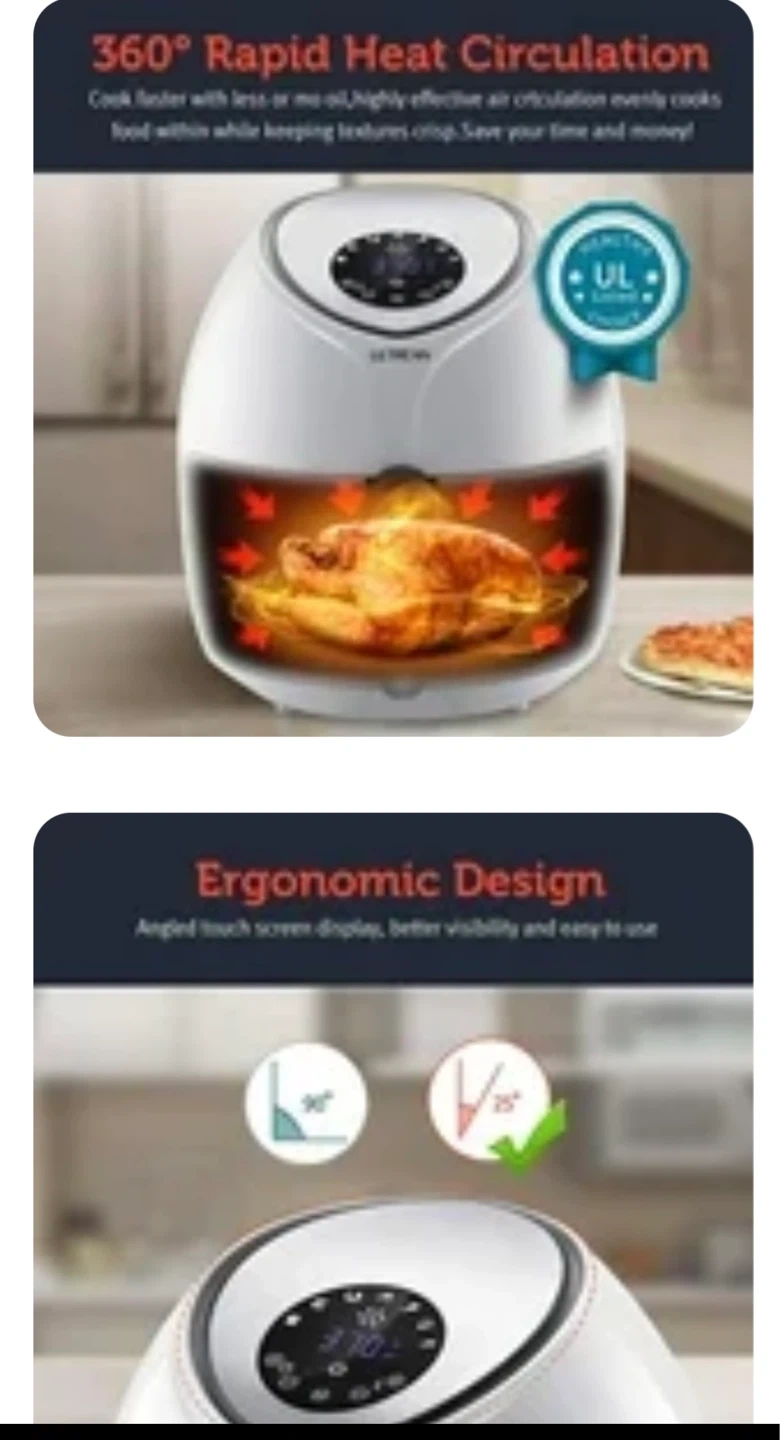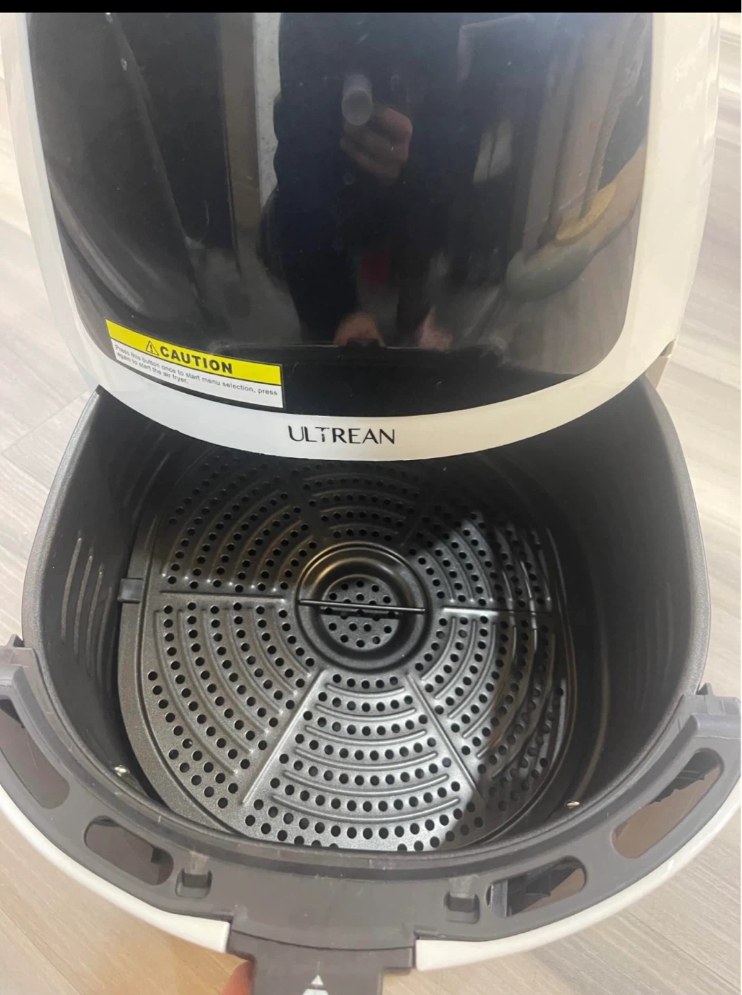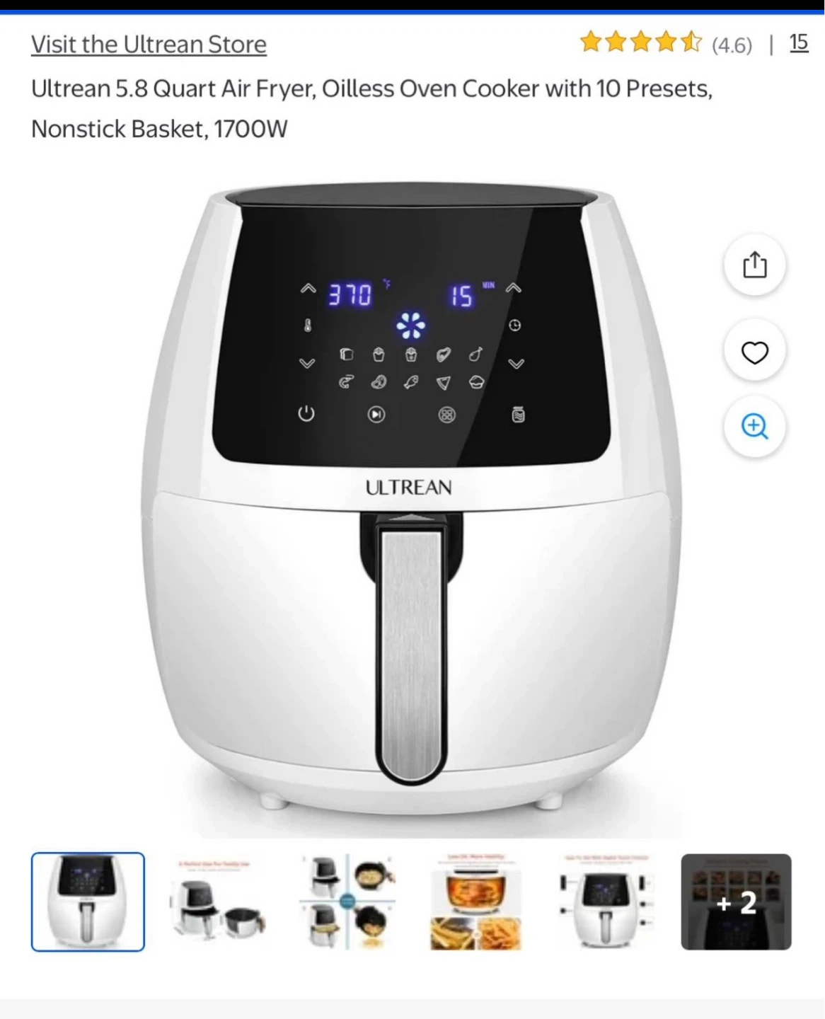 This Ultrean air fryer is 8.5 quarts and has 10 presets. It features a nonstick basket and 1700W power. It uses 360° rapid heat circulation for faster cooking.