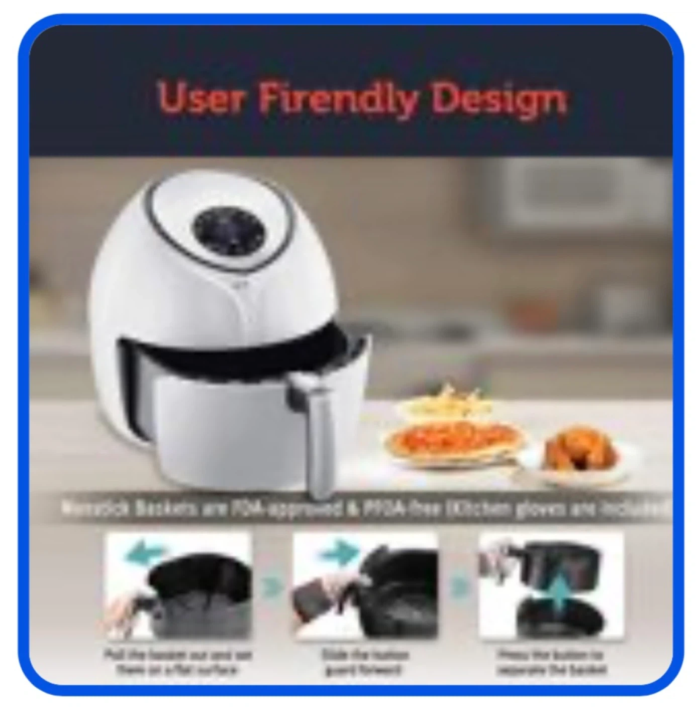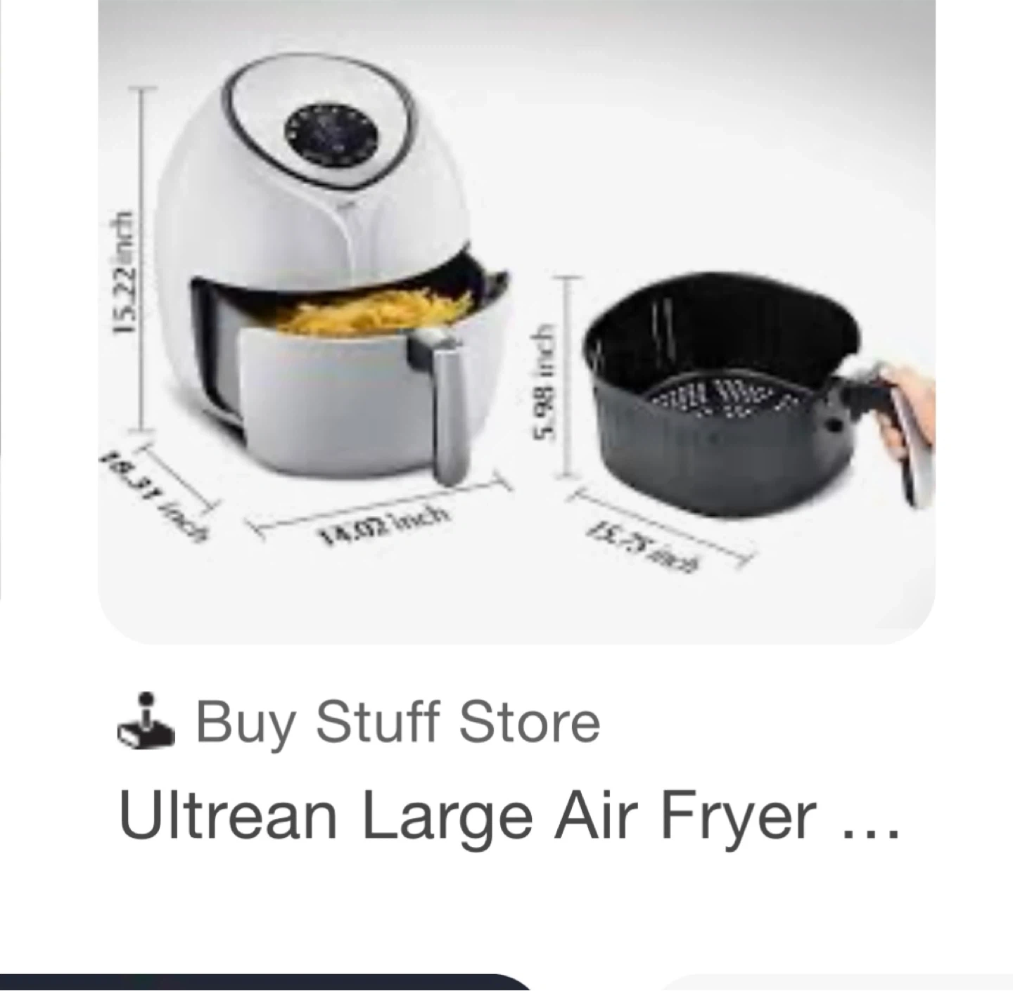 This Ultrean air fryer is 8.5 quarts and has 10 presets. It features a nonstick basket and 1700W power. It uses 360° rapid heat circulation for faster cooking.