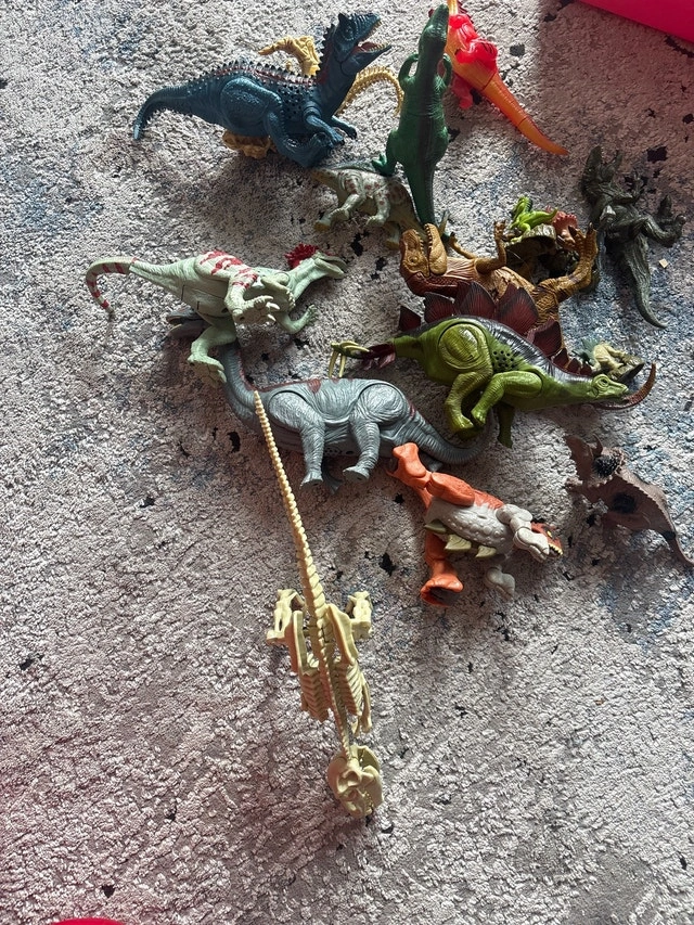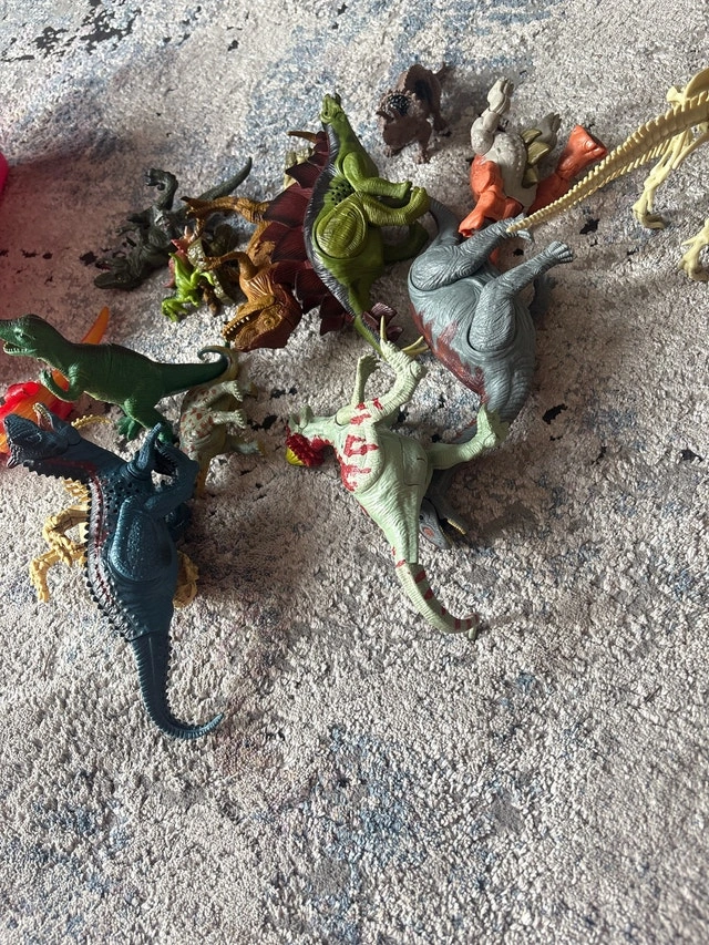 This is a collection of loose dinosaurs in used condition, perfect for imaginative play or collecting. These toys have been well-loved and are ready for a new home. Please see photos for condition details. They are from a smoke free home. Some are noise making. These prehistoric pals are looking for a new home where they can stomp, chomp, and roar to their hearts' content!