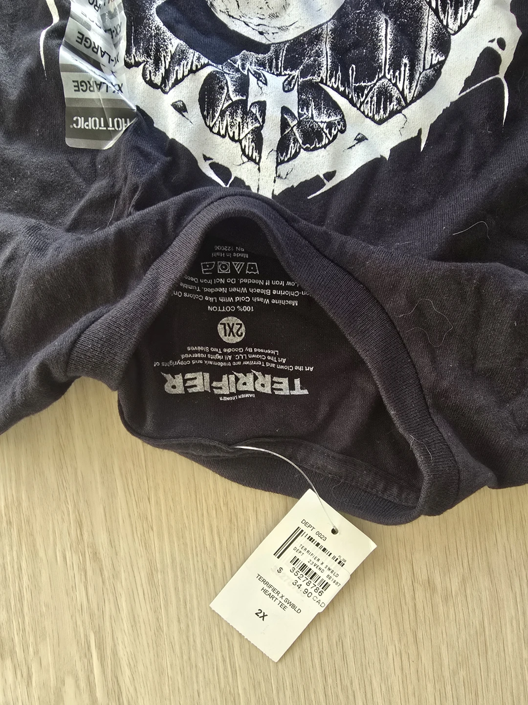 Selling a brand new Terrifier T-shirt in size 2XL! It's black and made of 100% cotton. Never worn. The tag shows it was originally $27.90 CAD.