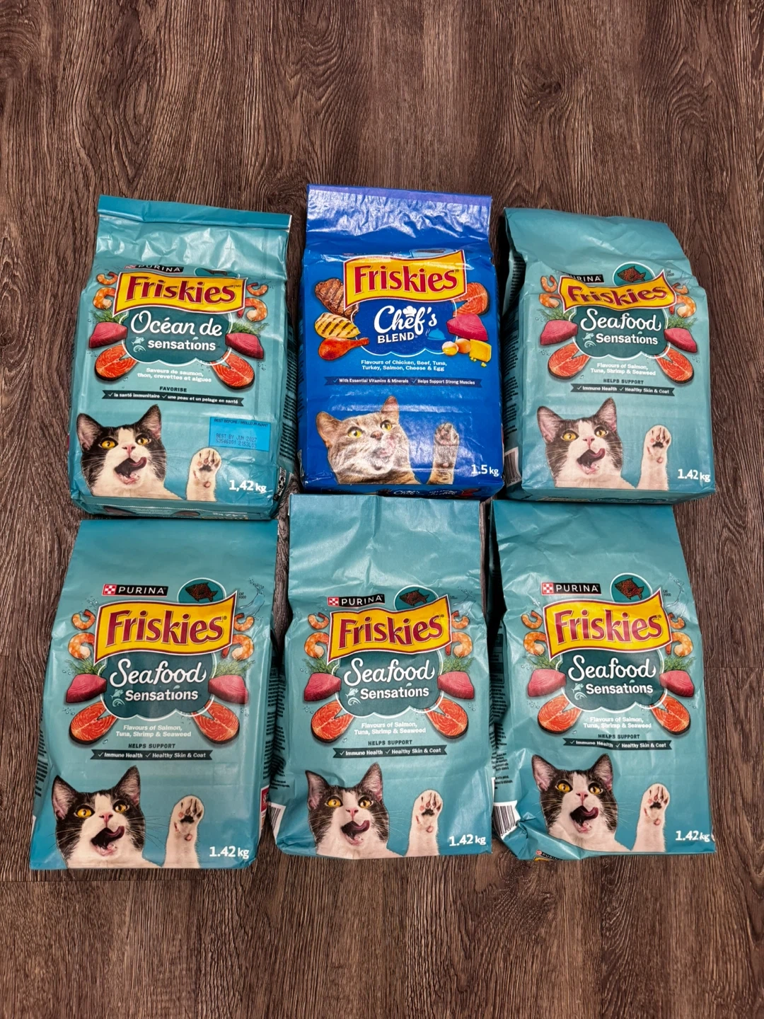 - Friskies Seafood Sensations (1.42 kg each) $20 for all