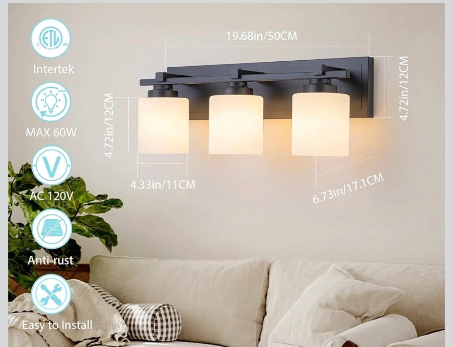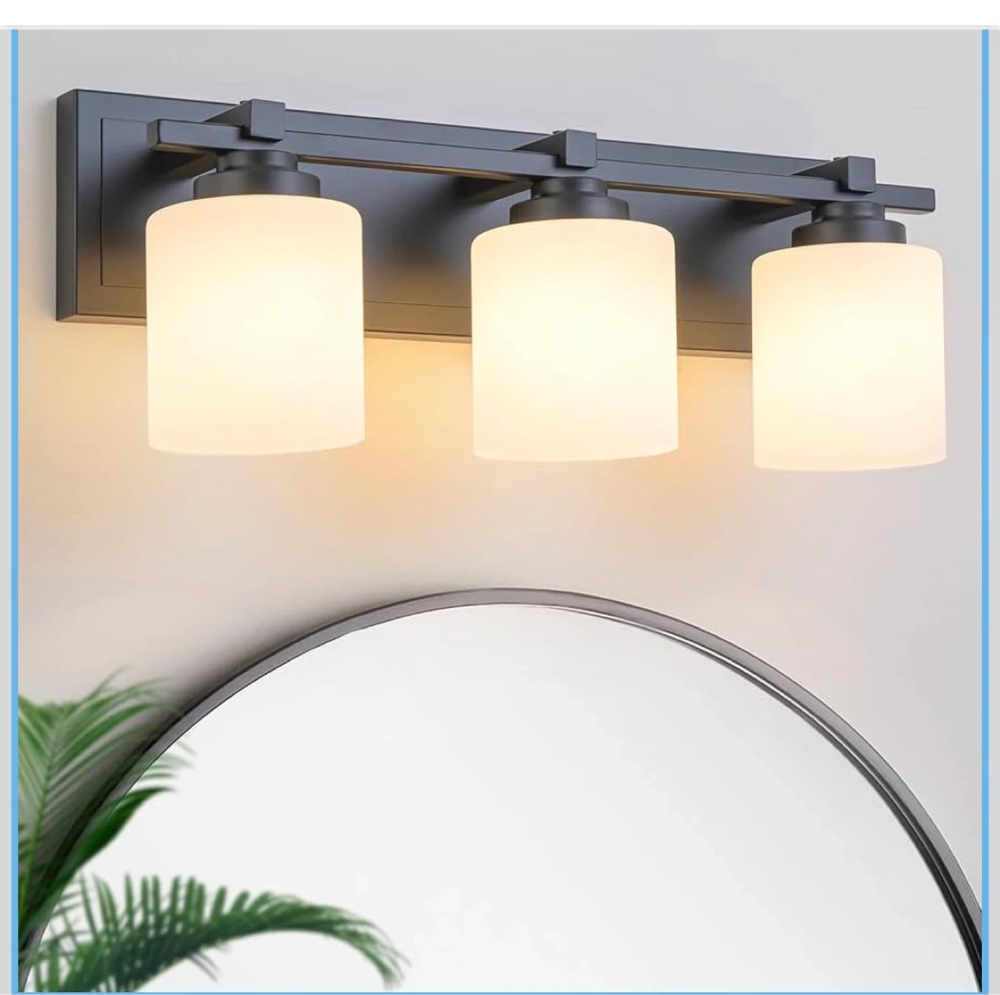 3 Light Modern Light Fixtures Over Mirror, Black Vanity Lights for Bathroom Wall Sconces with Milky White Glass Shades, E26 Socket (Bulbs Not Included)